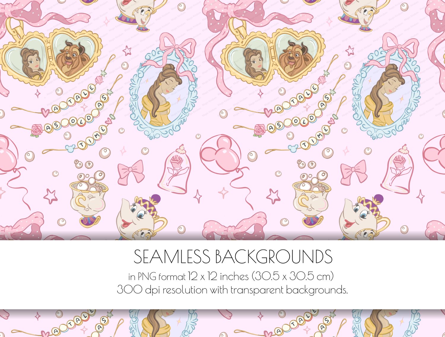 1 Belle, Beauty and Beast seamlessbackground in PNG format 12 x 12 inches (30.5 x 30.5 cm) 300 dpi resolution .