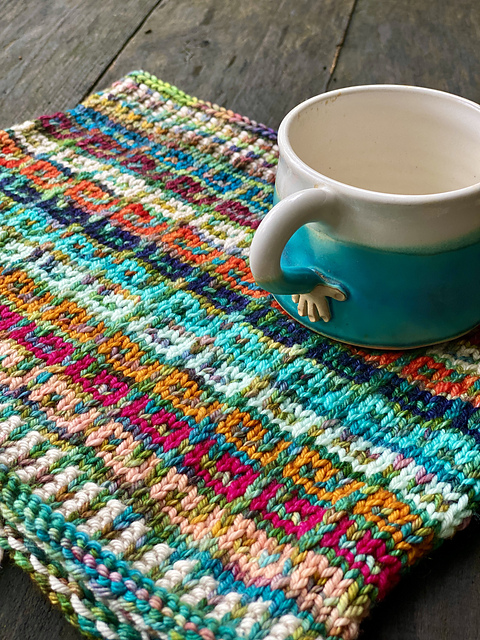 The mosaic method of colorwork uses one color at a time and slip stitches to get the color change, so it’s a perfect project for beginners to try colorwork. No floats, no tension problems!!
