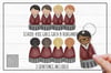 Welcome to this set of PEG DOLL SCHOOL GIRLS in Burgundy and Grey Uniform. You get a Peg Doll with different hair colours and a set of glasses to add if needed. As well as a rear view. These come in 3 skin tones Fair, Medium and Dark. These are designed to fit the Peg Doll Blanks which make perfect keyrings and bag tags for children returning to school but are also great for other projects such as cards, cushions and mugs and water bottles too. These are high resolution 300 DPI files. Thanks as always for looking.