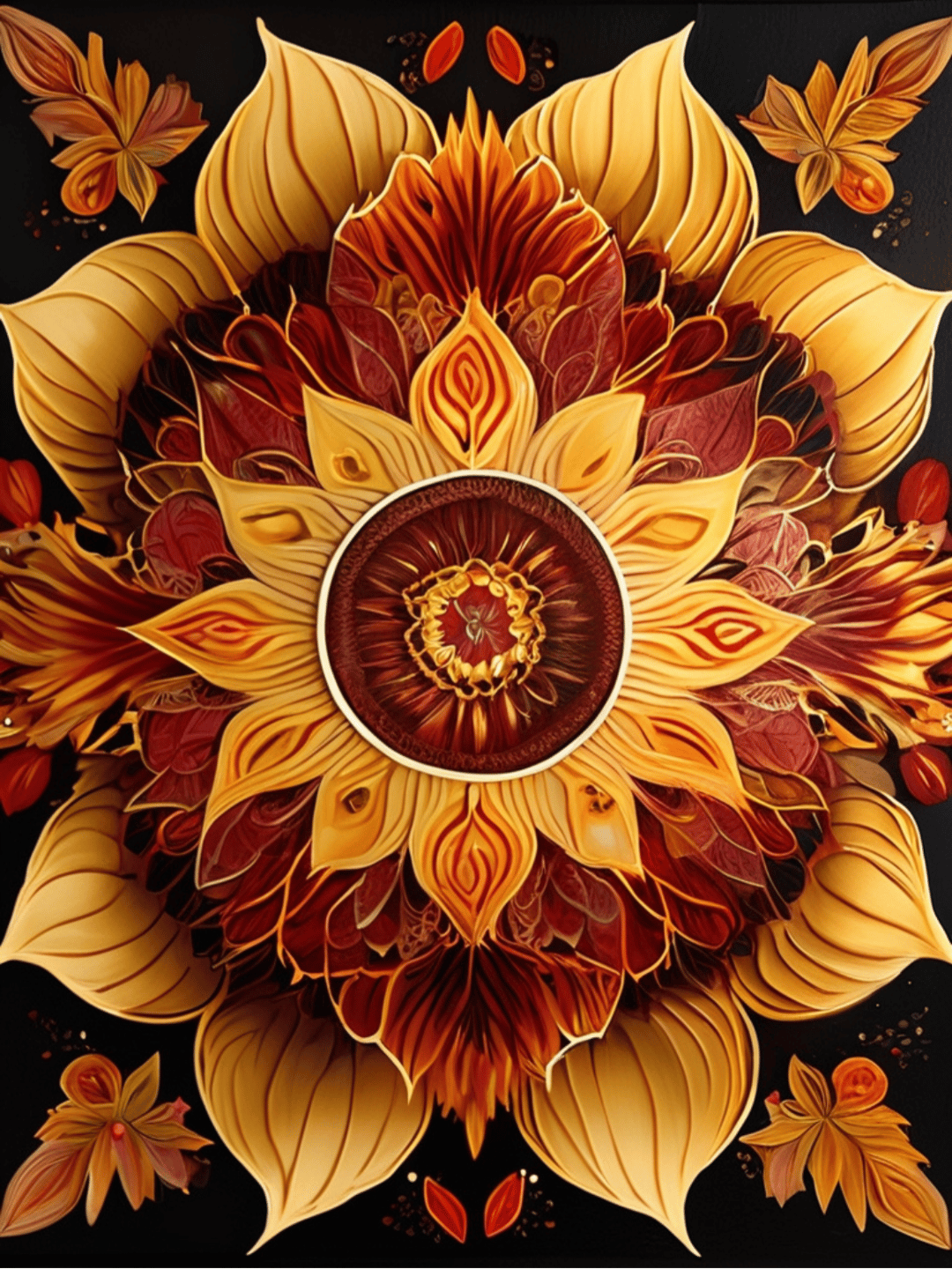 Golden harvest mandala golden harvest mandala, This painting features a charming mandala design with layers of intricate patterns radiating from the center. Png
