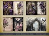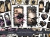 A collection of Victorian, Gothic Junk Journal digital papers full of tags, buttons, elements and full pages with purple, black and pink roses, black lace and jewelled gold antique hearts and keys. A4 sheets in a romantic Gothic style, with a purple, black and pink colour theme. Includes elegant and unique full page scenes, foldable papers and individual ephemera elements. Perfect for journals, scrapbooking, art journals, craft projects and fussy cutting enthusiasts.