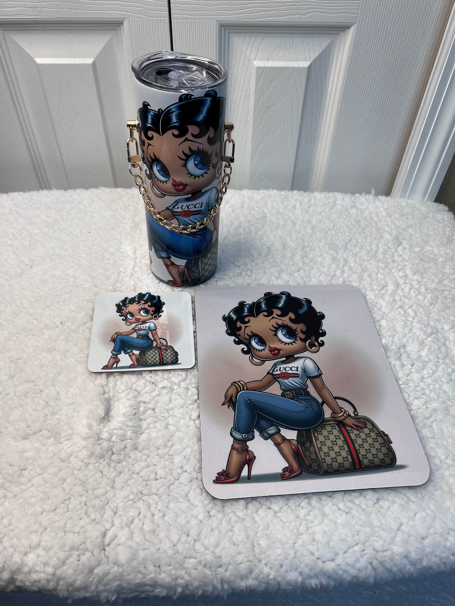 Introducing the Betty Boop Chain Tumbler β an exquisite 20oz stainless steel insulated tumbler adorned with a chic Betty Boop design, your name, and a stylish gold link chain. This tumbler is where fashion meets functionality, making it perfect for personal use or as a thoughtful gift.