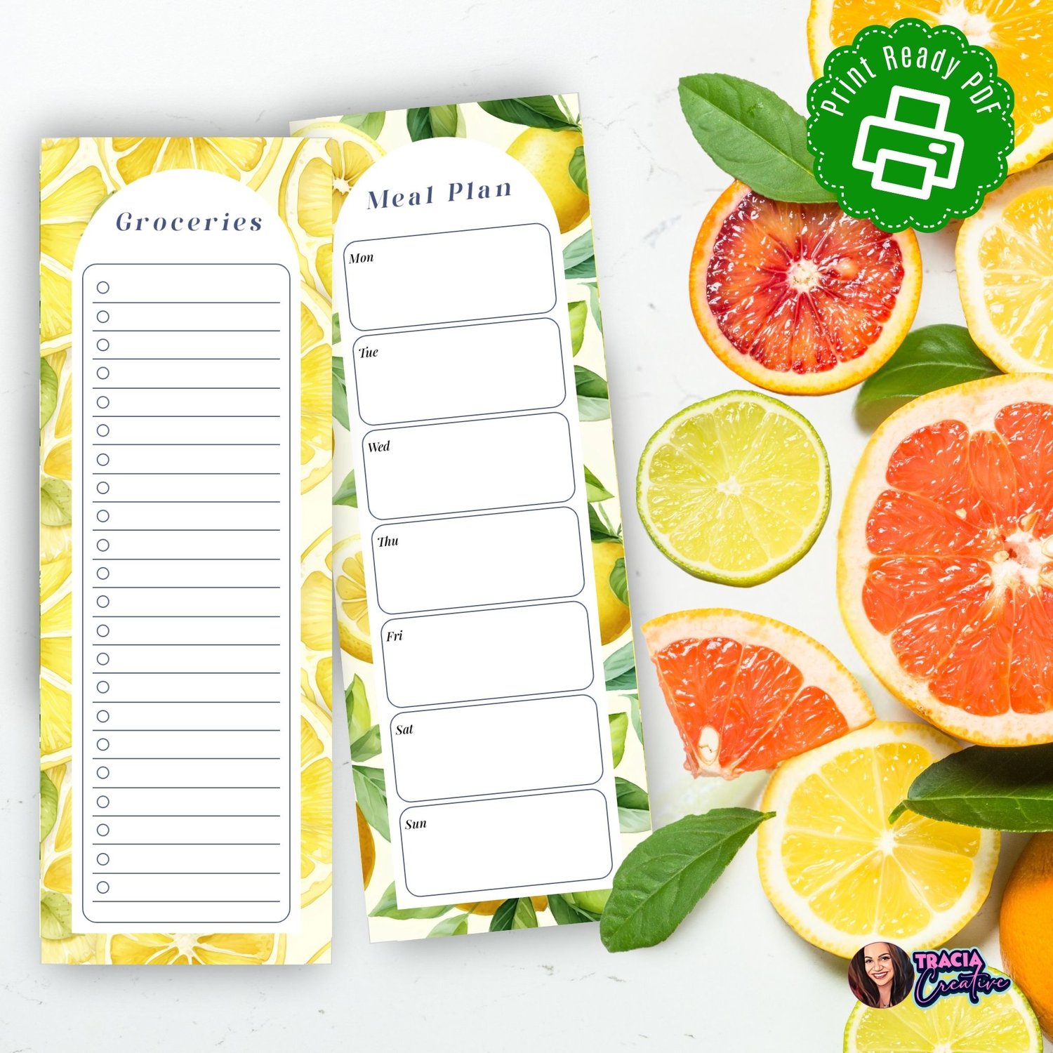 Meal planning just got a whole lot easier. Our Printable Meal Plan and Grocery List comes in a delightful lemon design, perfect for adding a touch of freshness to your week. This 2-page A5 half-page planner is designed to help you keep track of meals and grocery lists effortlessly.