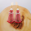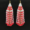 Cercei eleganti tip franjuri, din margele rosii, albe si aurii