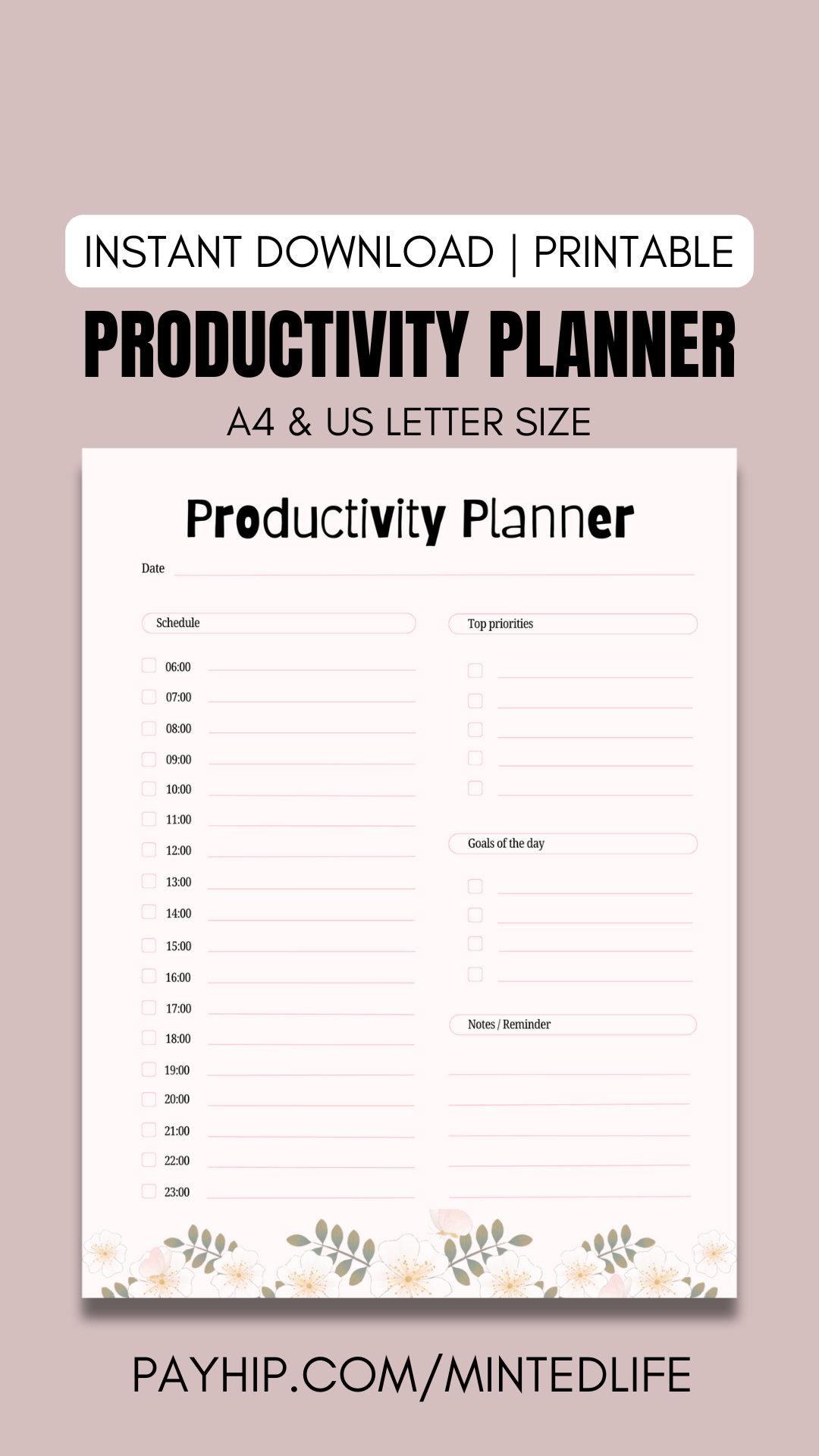 This productivity Planner allows you to prioritize your daily 'To Do List', reminders, notes, goals, and deadlines.