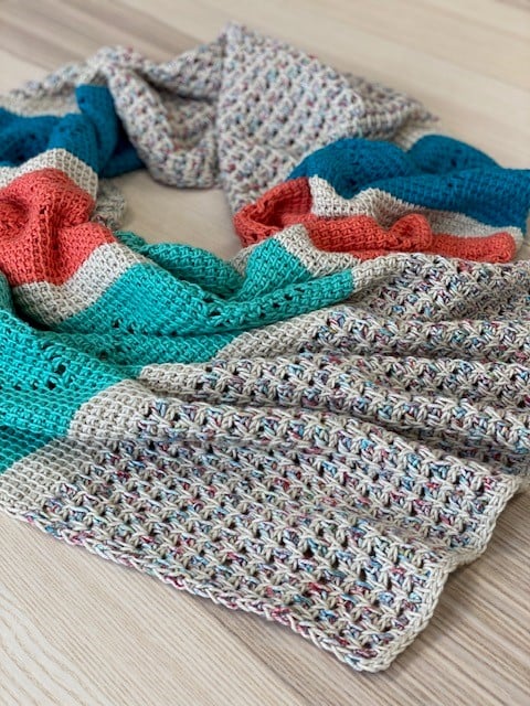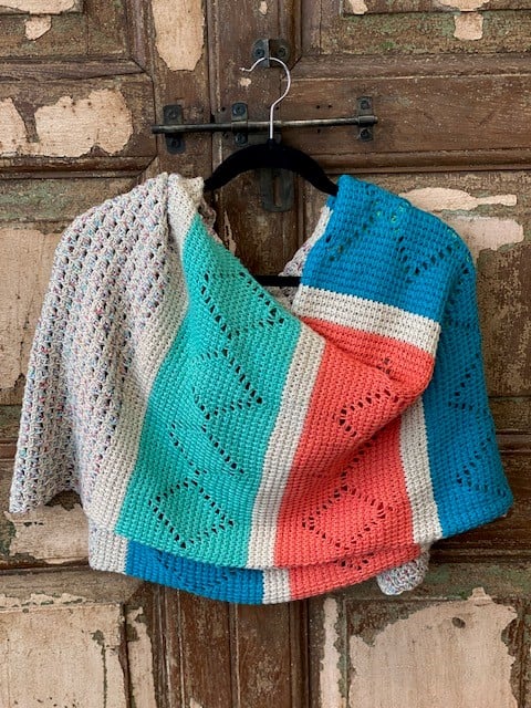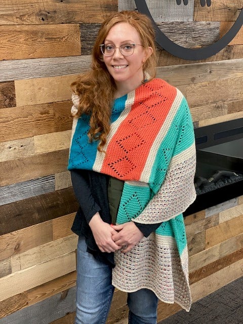 This is a digital pattern for the Arrowhead Wrap, an advanced beginner Tunisian crochet project. This is a large, rectangular wrap that is the perfect thing for throwing over your shoulders during cool days or evenings. It comes in one size, and is made using a 5.5mm Tunisian crochet hook and the following yarn:
