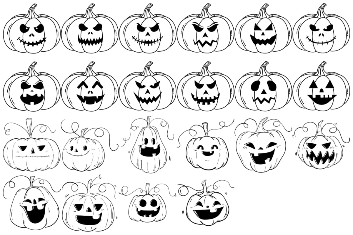Halloween Pumpkin Procreate Brush Stamps Set 3, 22 Spooky Pumpkin Stamps