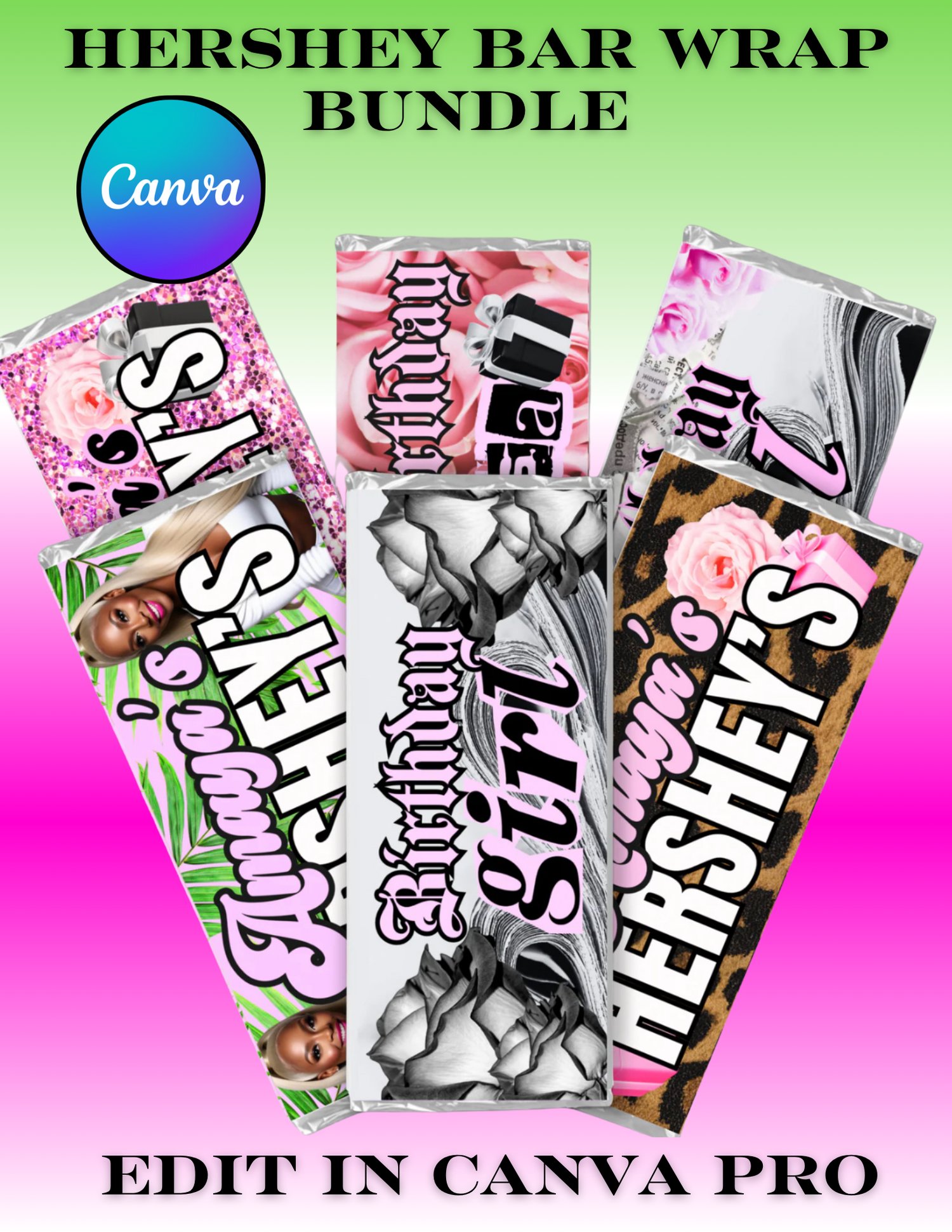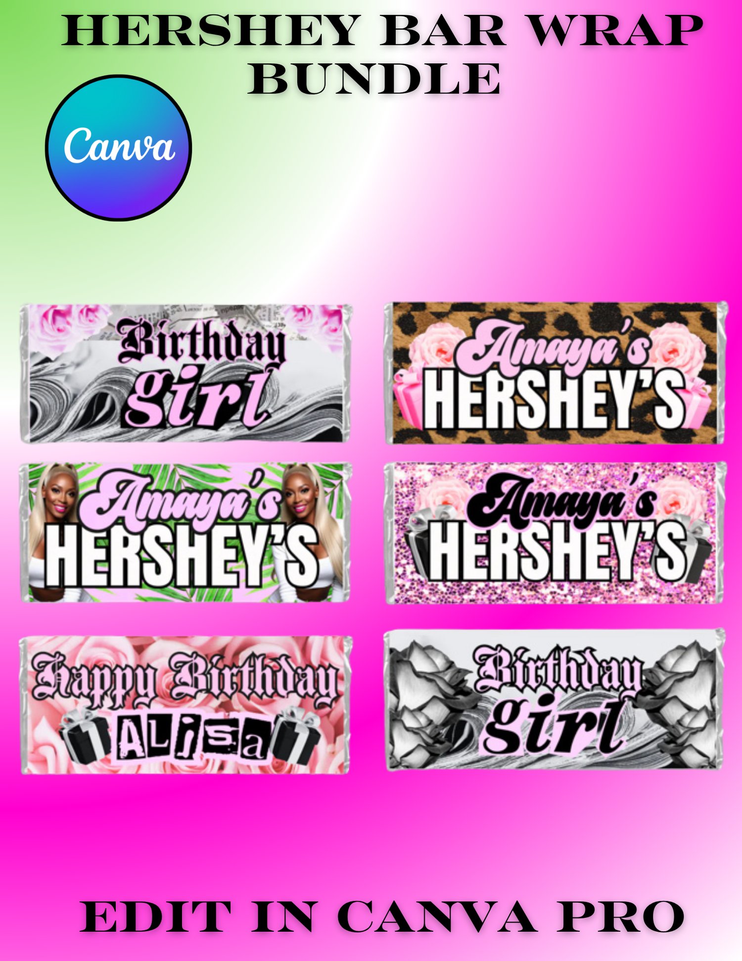 Add a custom, sweet touch to your next celebration with this Beautiful Set of 6 Hershey Wrapper Templates, designed to fit standard 1.55oz Hershey bars! Whether you're planning a birthday party, baby shower, wedding, graduation, or business event, these wrappers make for the perfect DIY party favor or branded treat.