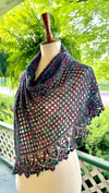 The original shawl made of Kolibrifonal, 50% merino-50% tencel yarn, 875yds/3.5oz, 800m/100g.