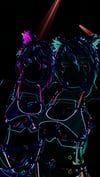 Watch her outfit and accents react in real time to the music. Every beat and bass drop triggers pulsing lights that sync perfectly with the rhythm.