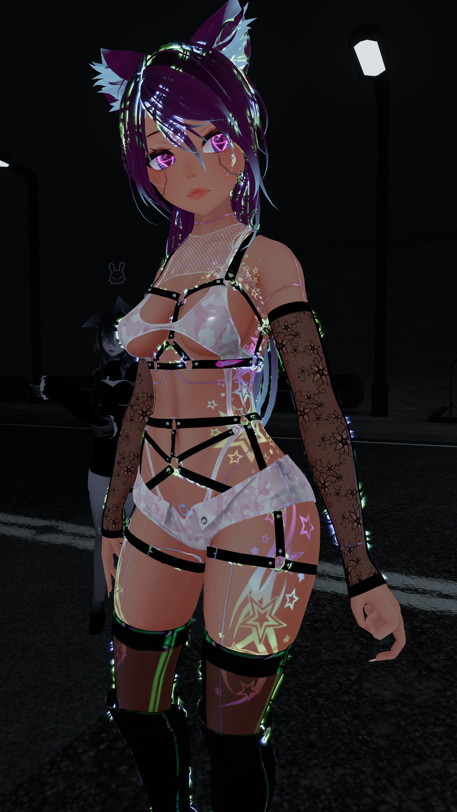 Her futuristic look, dynamic lighting, and deep customization options make her the perfect choice for anyone who lives for neon nights, bass drops, and self-expression in VR.