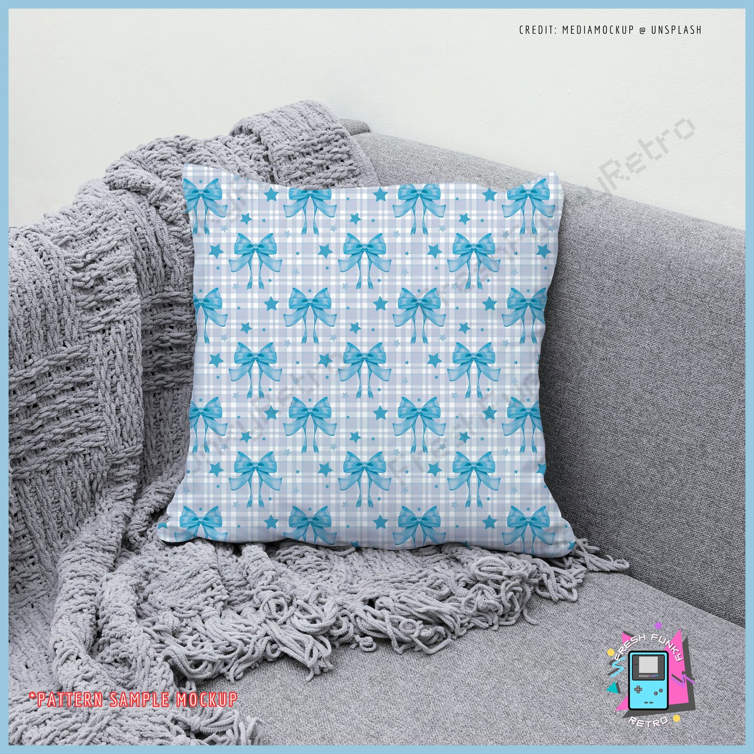 Blue Plaid and Bows Seamless Pattern for Personal or Commercial Use, Vintage Coquette Ribbons Digital Paper | Instant Download