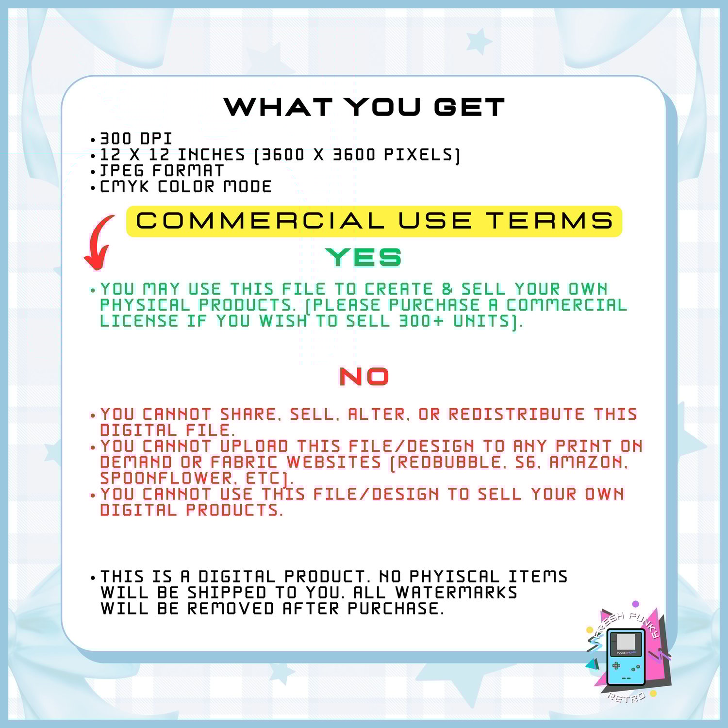 - You cannot upload this file/design to any print on demand or fabric websites (Redbubble, S6, Amazon, Spoonflower, etc).