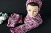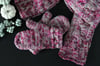The Raspberry Jam 3-piece set will grow your Tunisian crochet skills, with cable and working in the round. Each piece works up fast and coordinates with the cablework on the hat brim, cuff, and throughout the scarf. This soft washable DK-weight wool yarn is fabulous and feels great against the skin.
