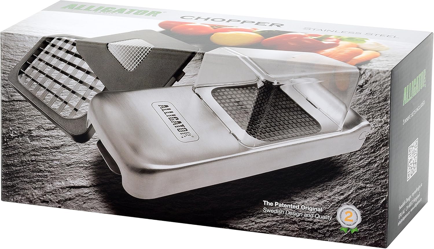 Effortless Meal Prep: The Alligator Vegetable Chopper simplifies slicing, dicing, and chopping of vegetables, fruits, and salad ingredients. Its three interchangeable stainless steel blades handle a variety of food types with ease.