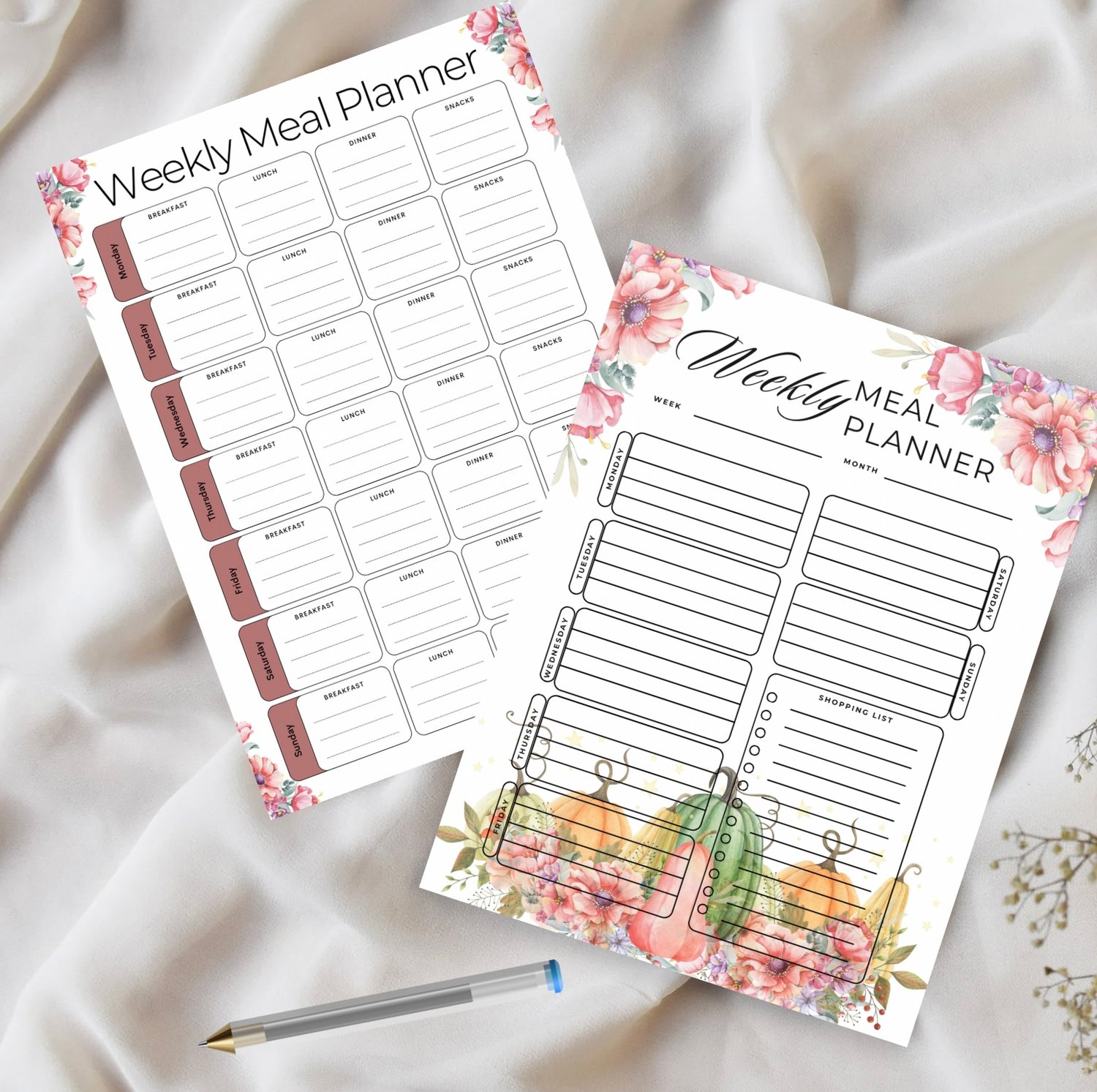 Welcome the beauty of fall into your kitchen with this Printable Fall Weekly Meal Planner. Featuring soft autumn florals, watercolor pumpkins, and a clean, easy-to-use layout, this planner brings warmth and organization to your weekly routine.