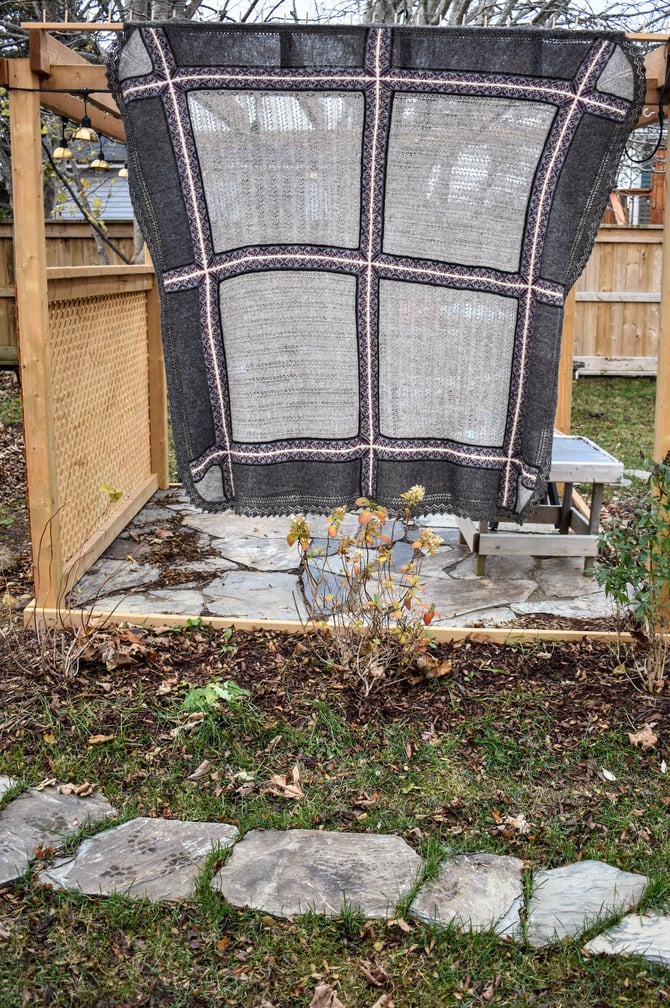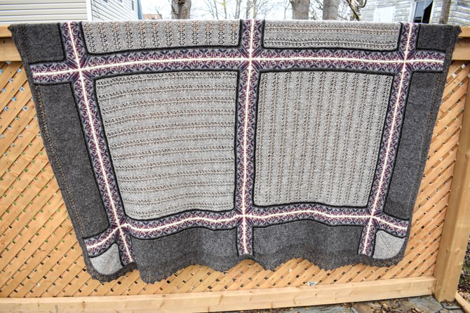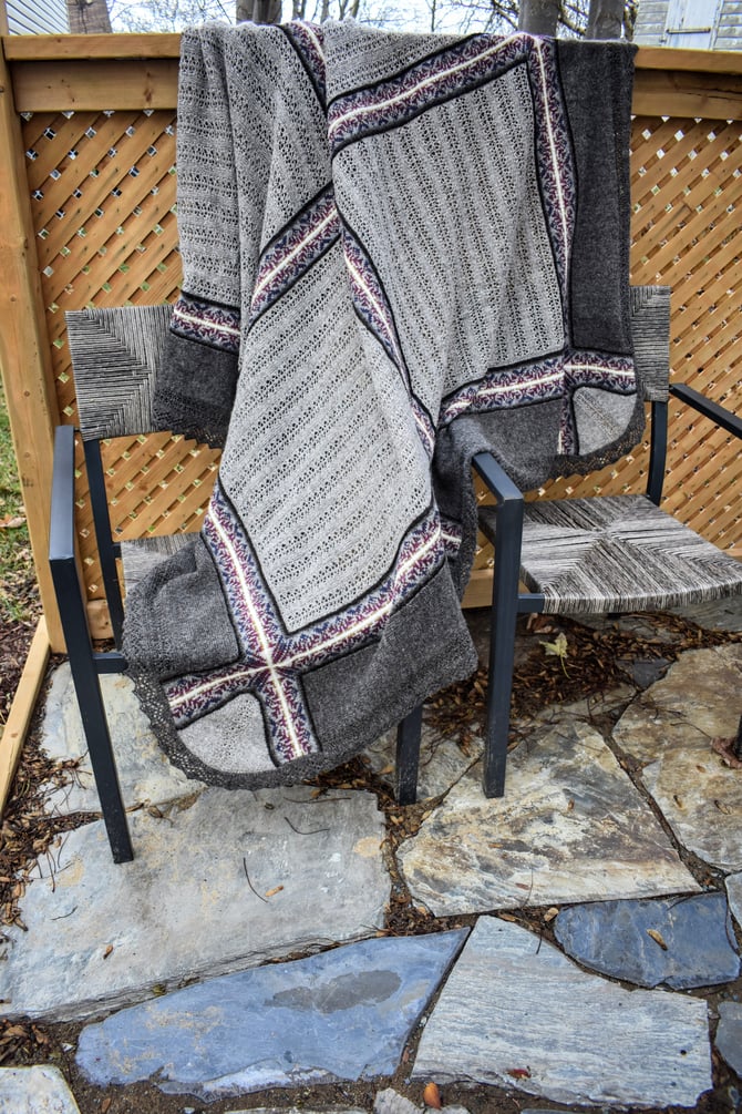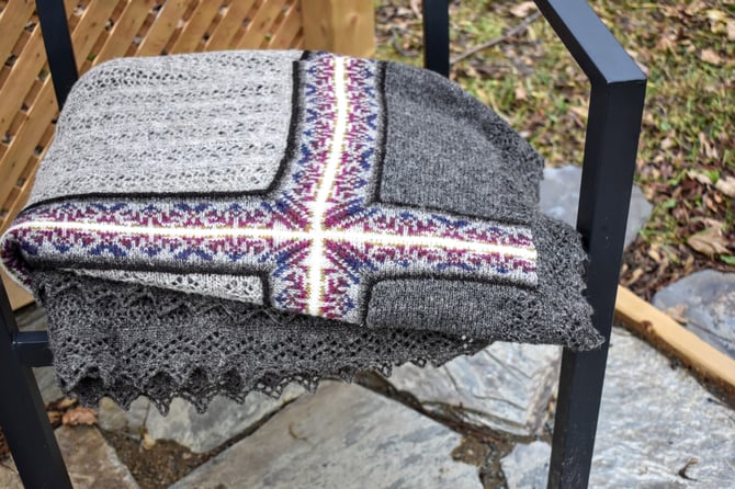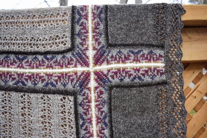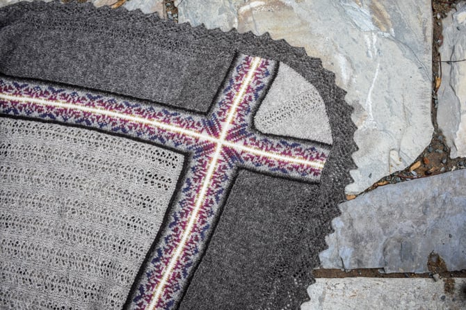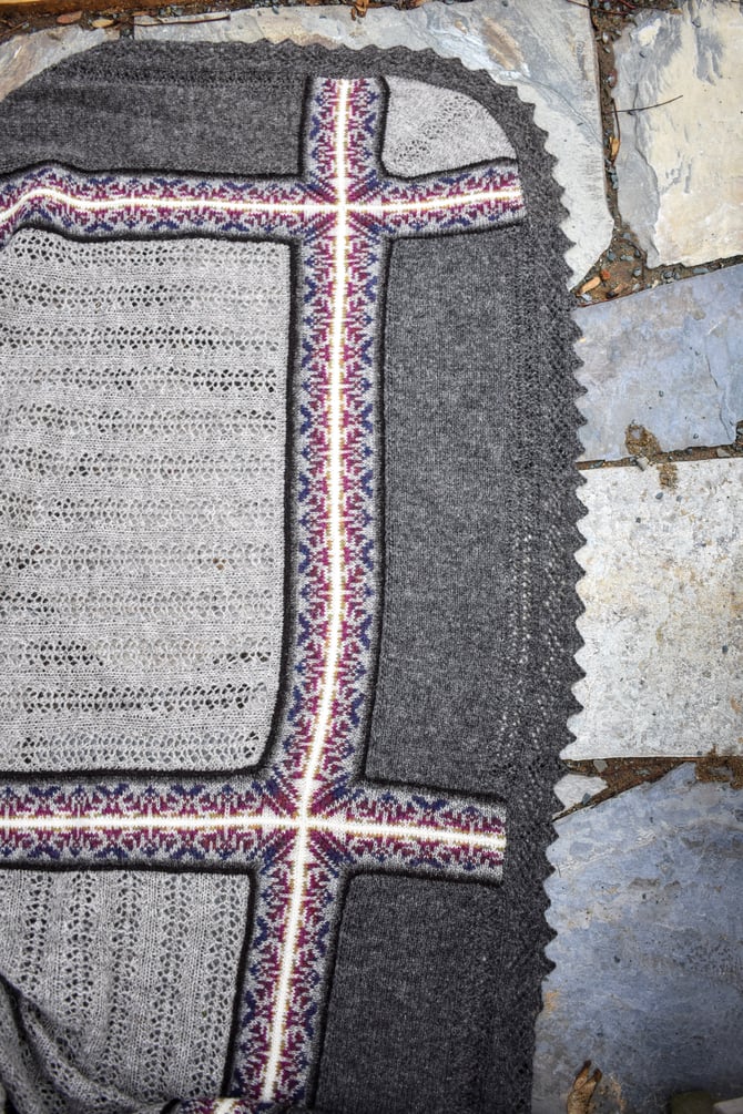 The 5th and final design of the Noggin Cove Island’s Collection is the hill to climb, Noggin Hill. It’s a big, intricate, and modular combination of lace and Fair Isle.