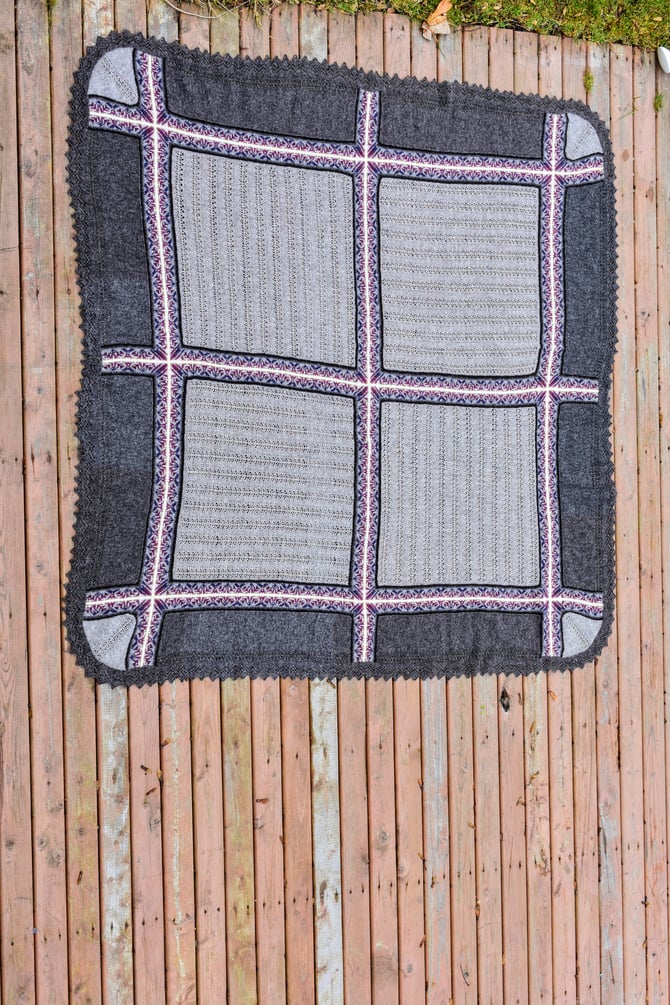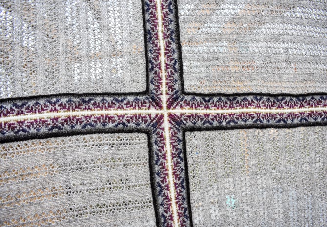 (5) The edge Fair Isle bands are then worked in the round and steeked to form the 4 edges.
