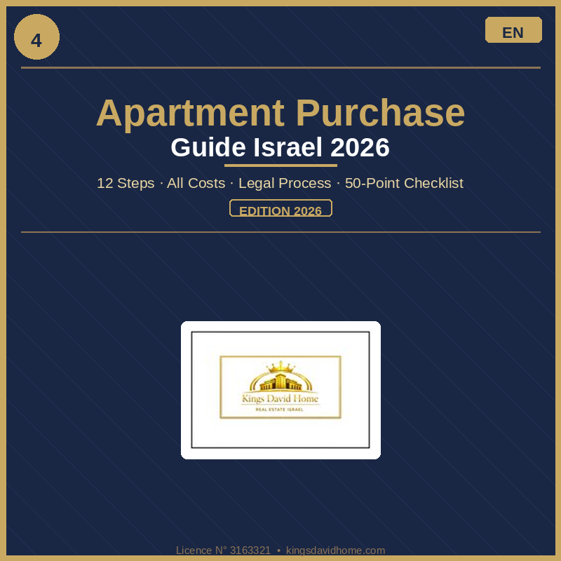 The complete step-by-step roadmap to buying an apartment in Israel. The 12 steps of purchase, all real costs calculated with zero hidden surprises, off-plan vs resale comparison, top investment cities, legal process explained, 50-point checklist, and the do's and don'ts every international buyer must know. Whether it's your first purchase or your fifth — this guide eliminates costly mistakes. Instant PDF download.