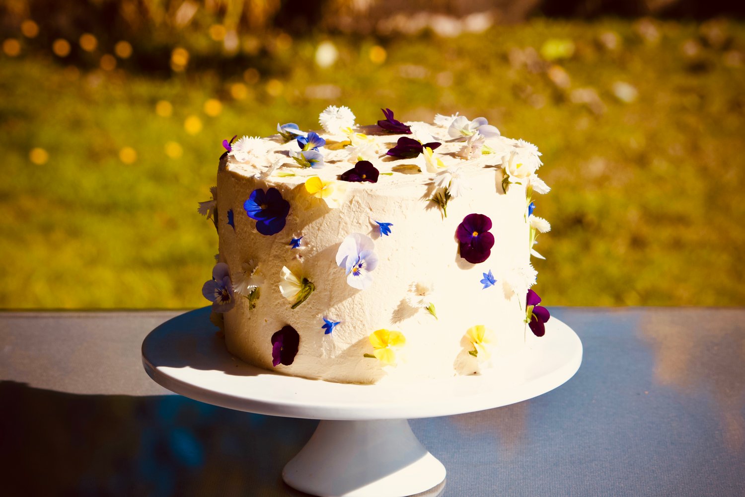 Did someone say tea party? Our vanilla butter cake is filled with mascarpone cream, sticky toffee berry jam, covered in silky swiss meringue buttercream, and decorated with seasonal edible flowers.