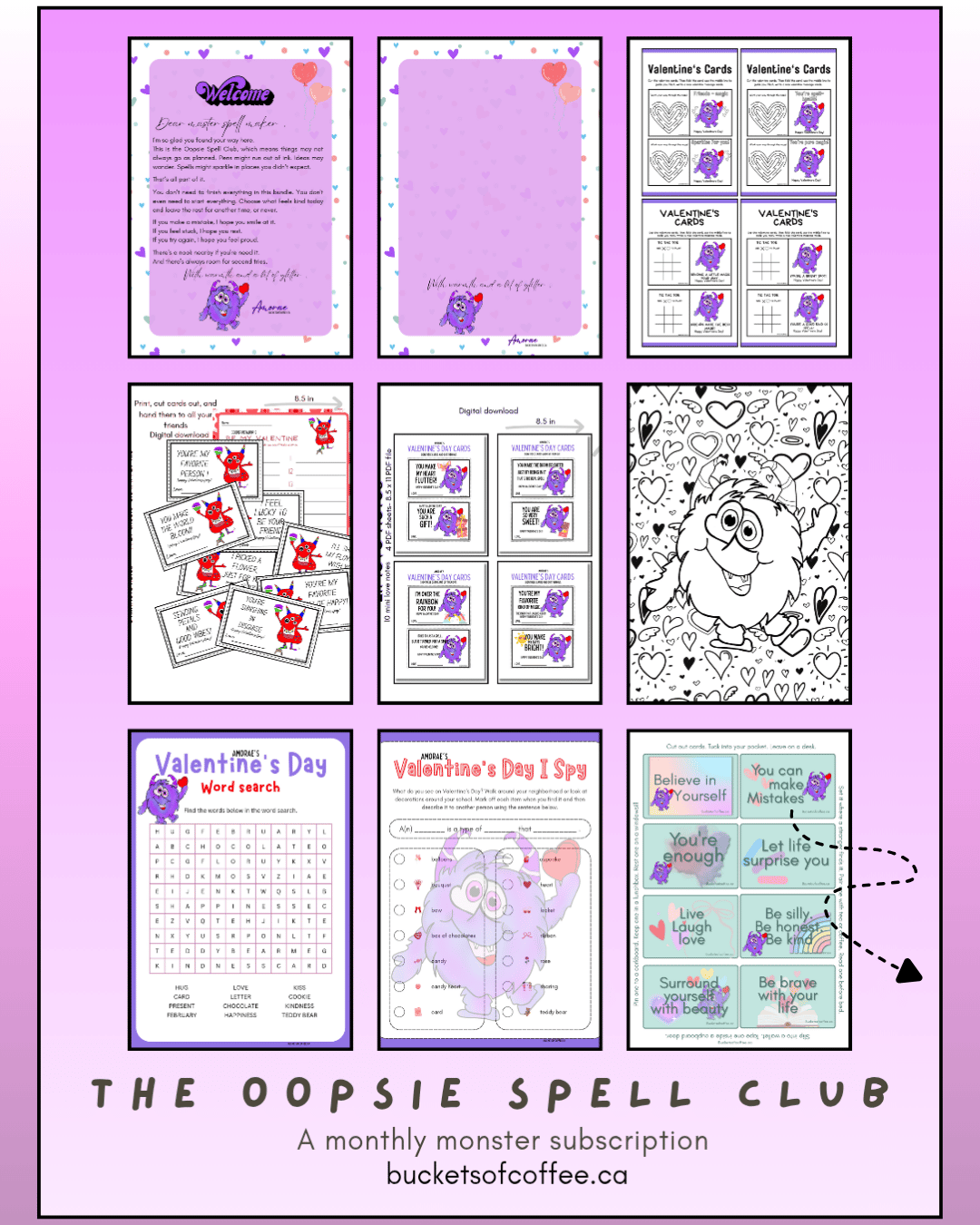 Each month, members of the Oopsie Spell Club receive a curated digital bundle designed to spark joy and creativity.