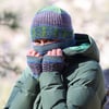 This is the companion hat, inspired by the cowl and fingerless mitts I designed for my sister-in-law after she gave me 3 colors of yarn to make her something with.