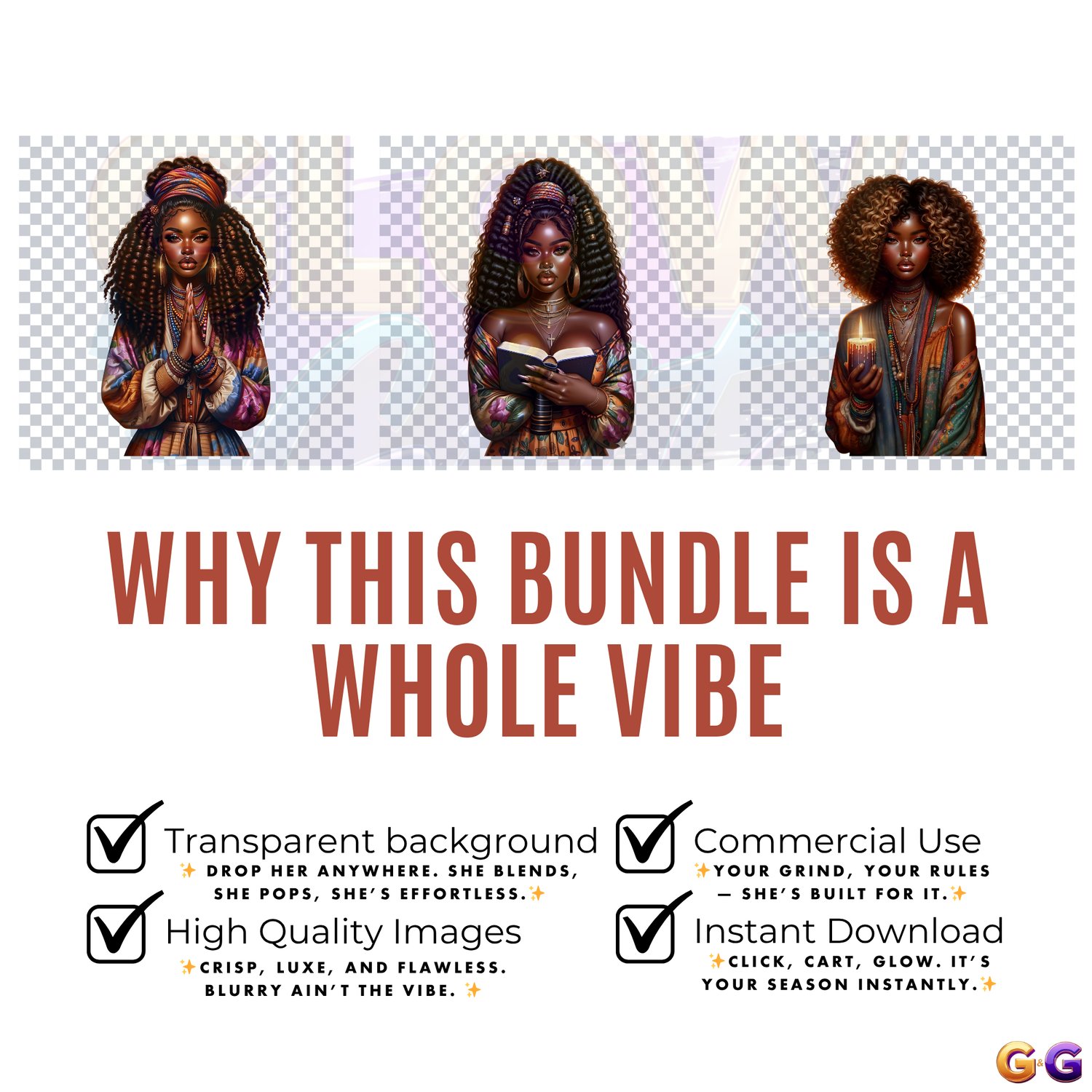 Add a little warmth and unapologetic style to your fall projects with the Cozy Glow Clipart Bundle. A luxe Glow & Grit collection serving radiant autumn energy with bold Afrocentric fashion. Perfect for planners, mugs, journals, and seasonal decor.