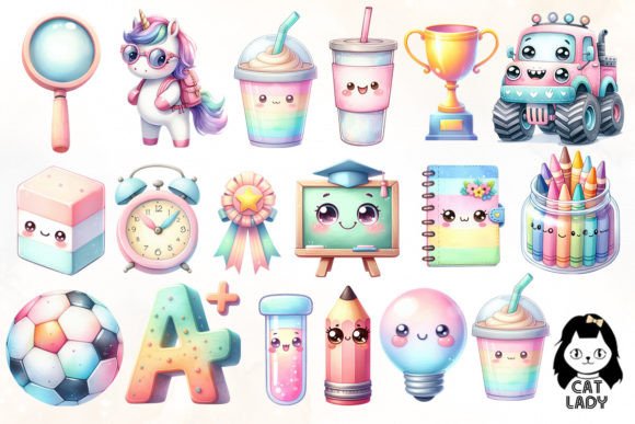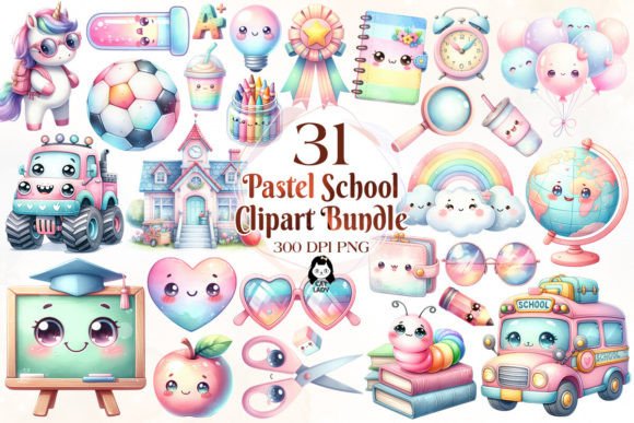 => Pastel School Clipart – Back To School : 31 PNG
