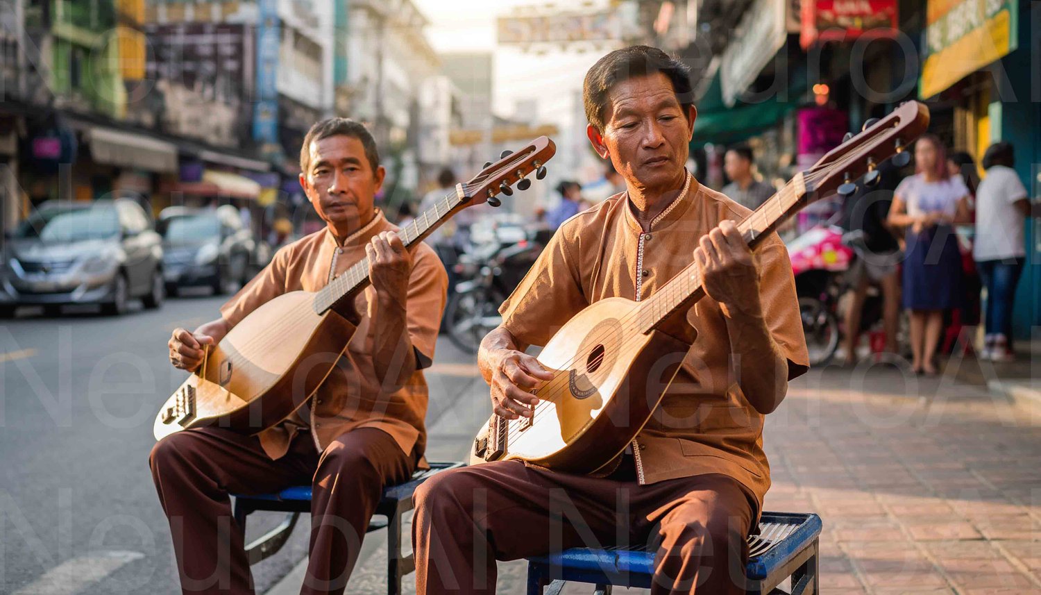 Street musicians playing traditional instruments