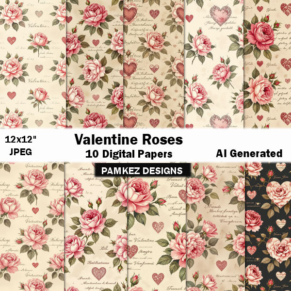 Bring a touch of romantic elegance to your creative projects with the Valentine Roses Digital Paper Pack by Pamkez Designs. This beautiful collection includes 10 high‑quality 12x12" JPEG papers, each featuring soft pink roses, delicate hearts, vintage textures, and dreamy Valentine‑themed patterns. Perfect for crafters, designers, and small‑business creatives looking for charming, ready‑to‑use backgrounds.