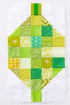 A scrappy lime quilt block - makes a great pillow or wall hanging! Part of the Fruit Salad Series by Katie Mae Quilts.