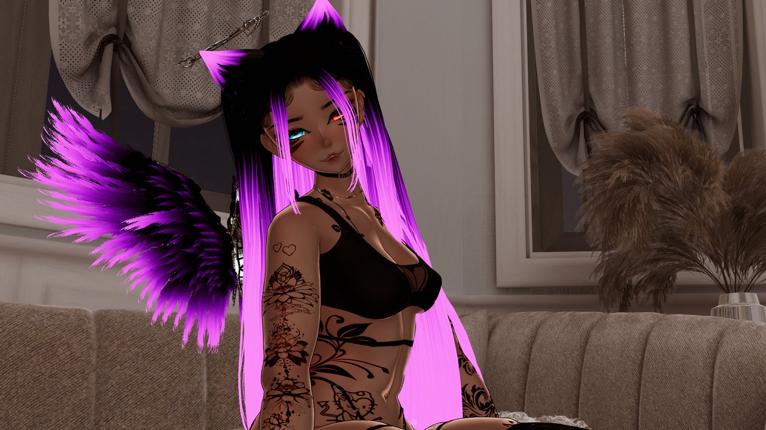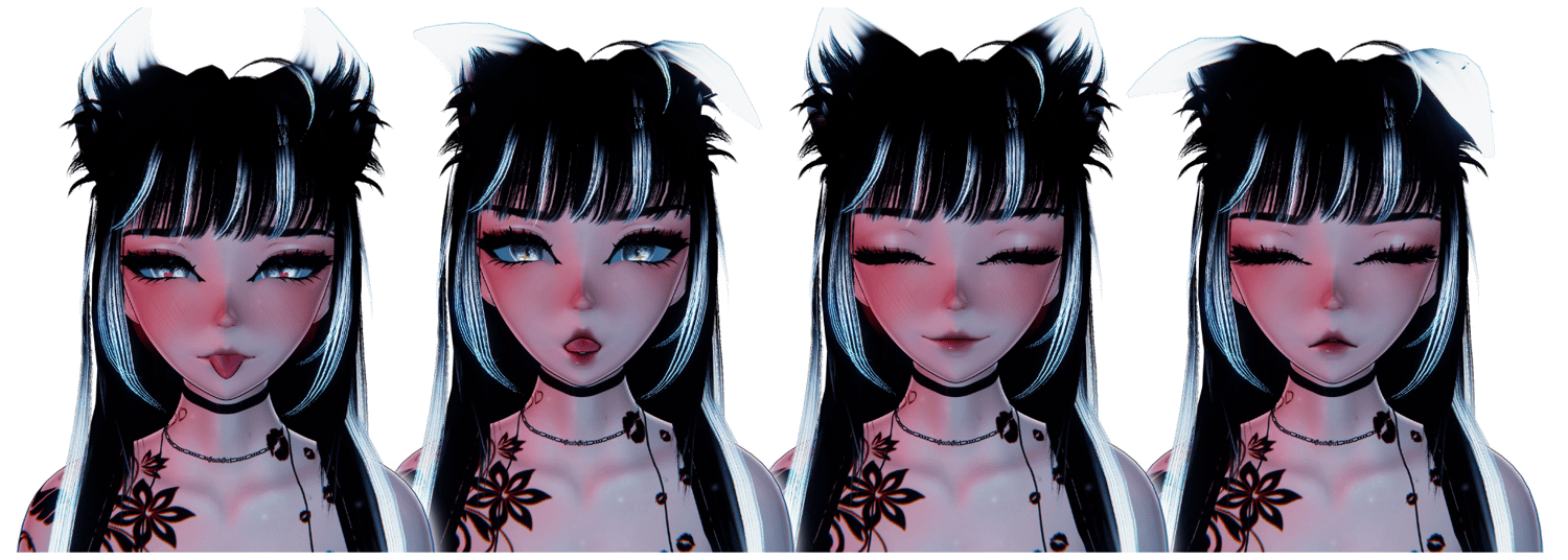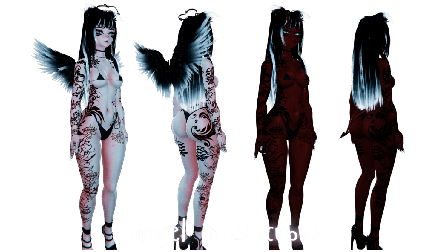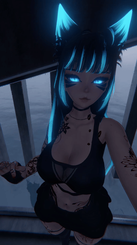 More clothing: Leggings/Shorts/2 Bras/Sports Bra/Wet Shirt/Locked Up/High Tops/Thigh Highs, more body type options, more hair, Head Pat, Boop, Customizable rings, puppy tail, species animation (ears and tail), nails with multiple shapes and colors, cheek stripe, 3 face presets, separate colors/emission on the eyes, 2 wet body options, audiolink, succubus and angel modes can be combined, optimized parameters, ear movement with facial expressions and some optimization.