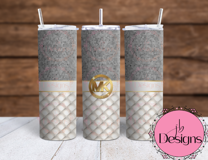 White tufted and silver Glitter Michael Kors MK 20oz Tumbler - Can be personalized at no extra cost!