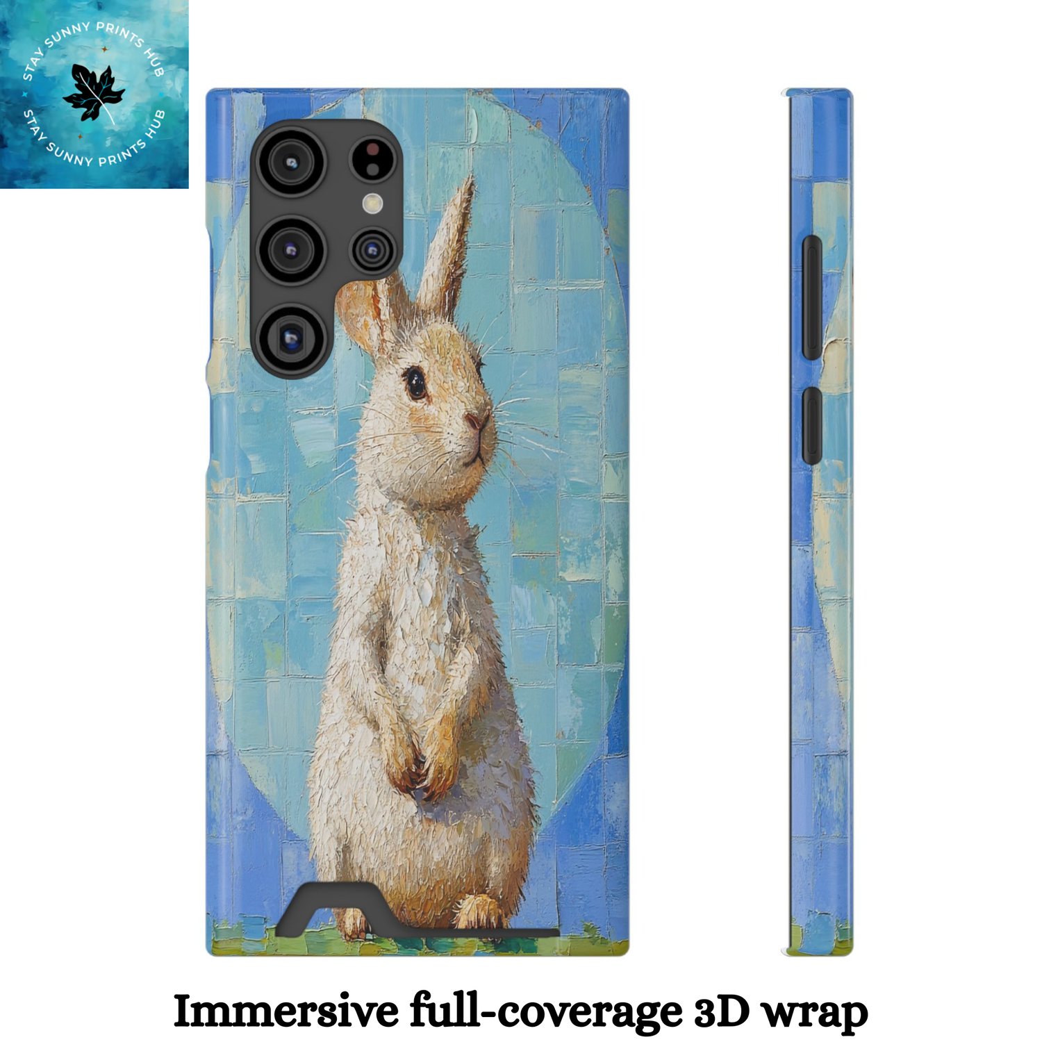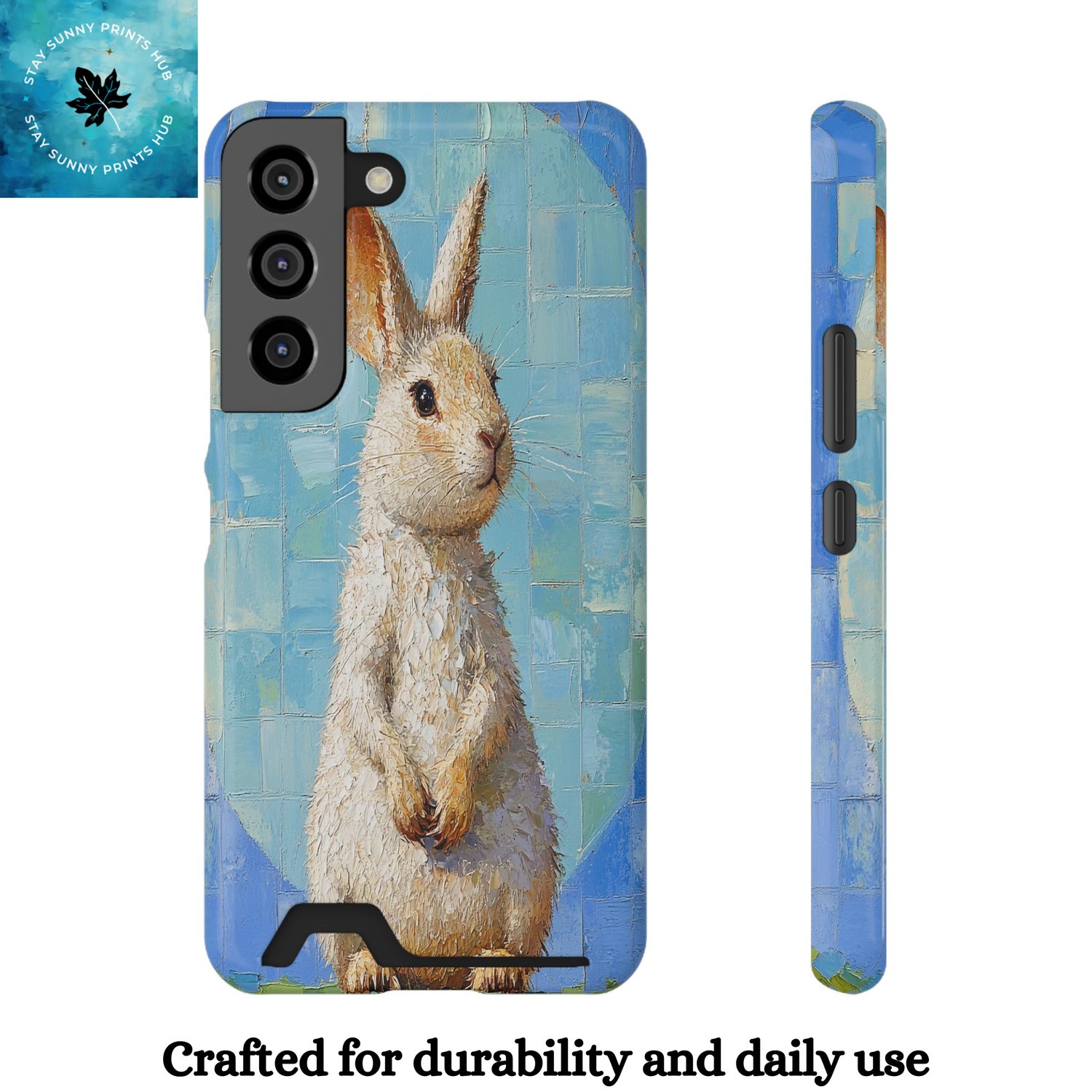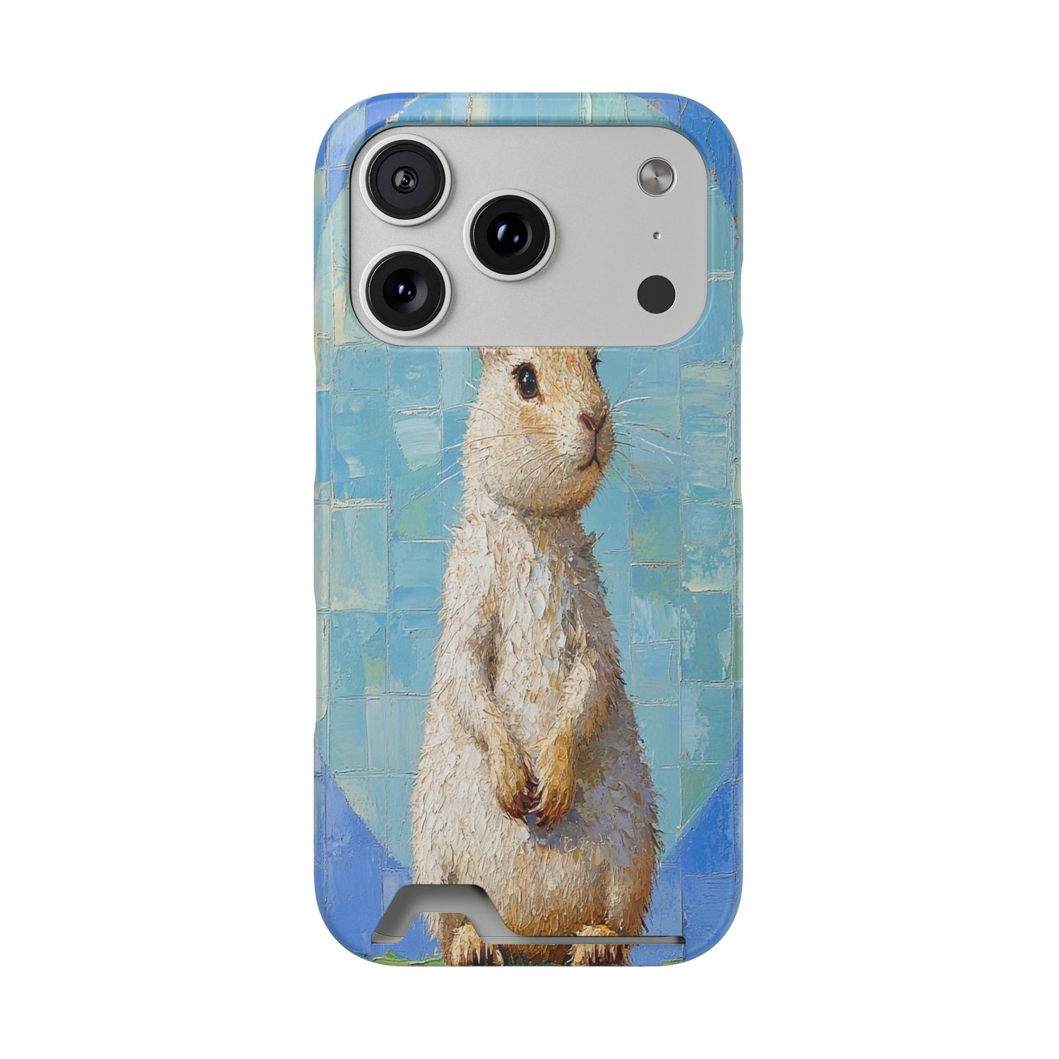 Sky Potoroo features the rare and charming Gilbert’s Potoroo against a whimsical bright sky blue circular squares, mesh white, and lawn green seafoam background. Illustrated in a fantasy-inspired style, this artwork captures the Potoroo’s playful and magical essence, making your phone a unique and eye-catching accessory.