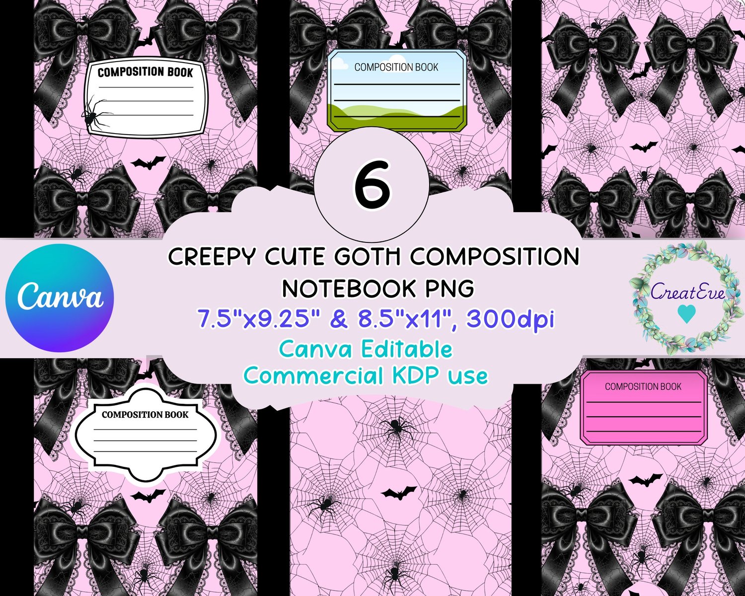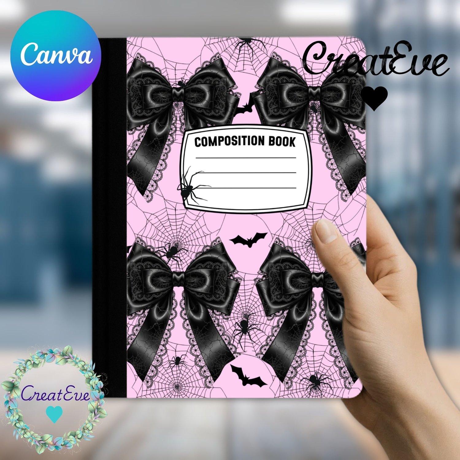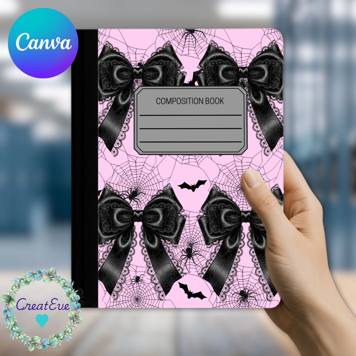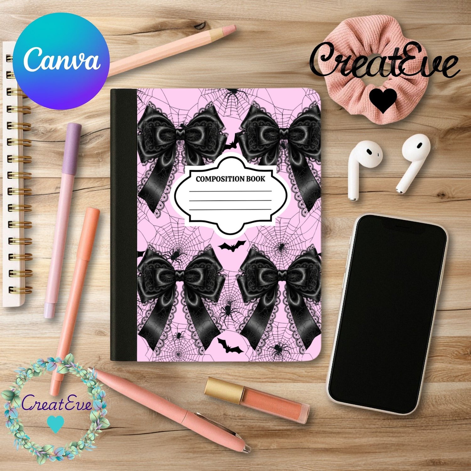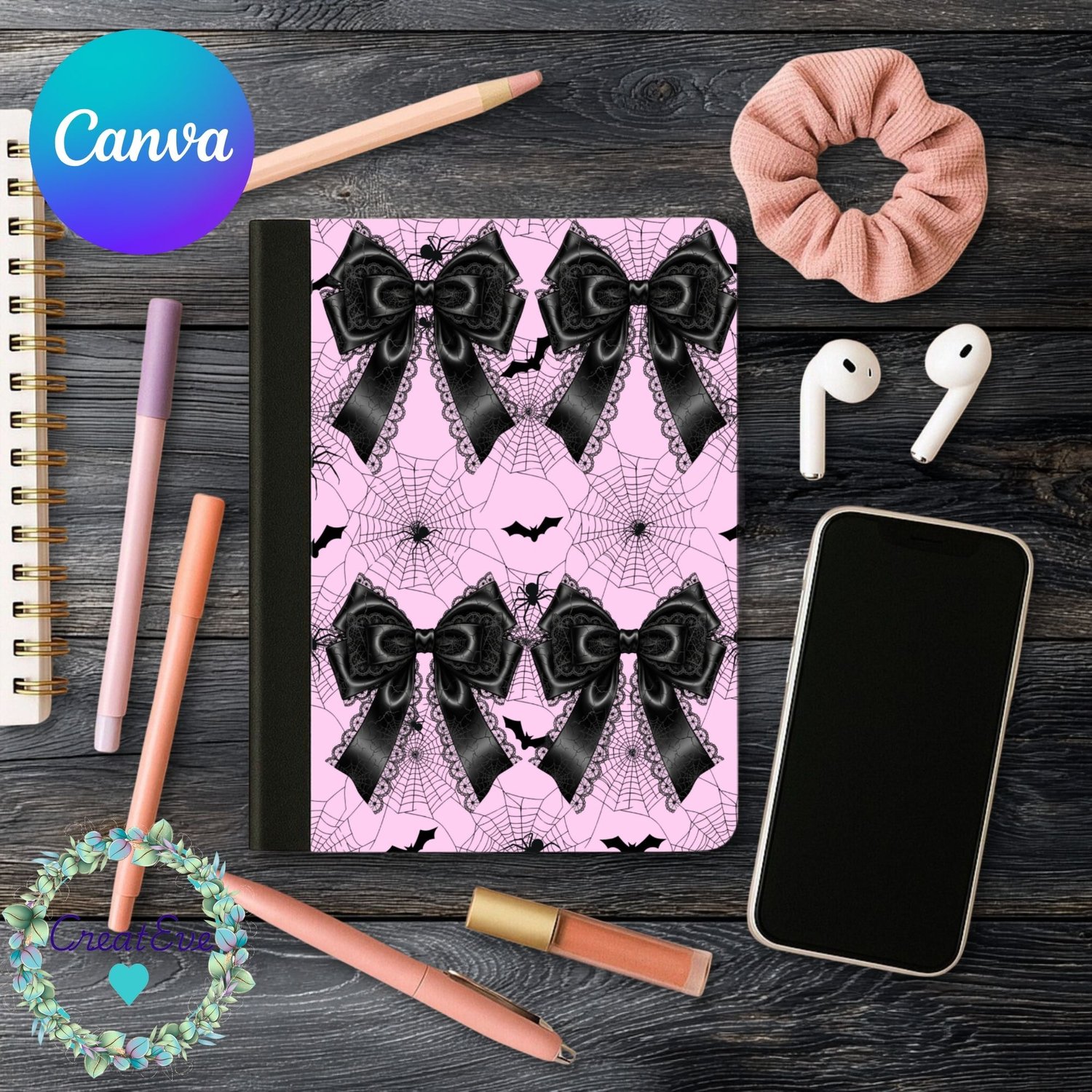 Pastel Pink Creepy Coquette Bow & Spiders Notebook Canva Editable & Ready to Print PNG 6 Option Bundle