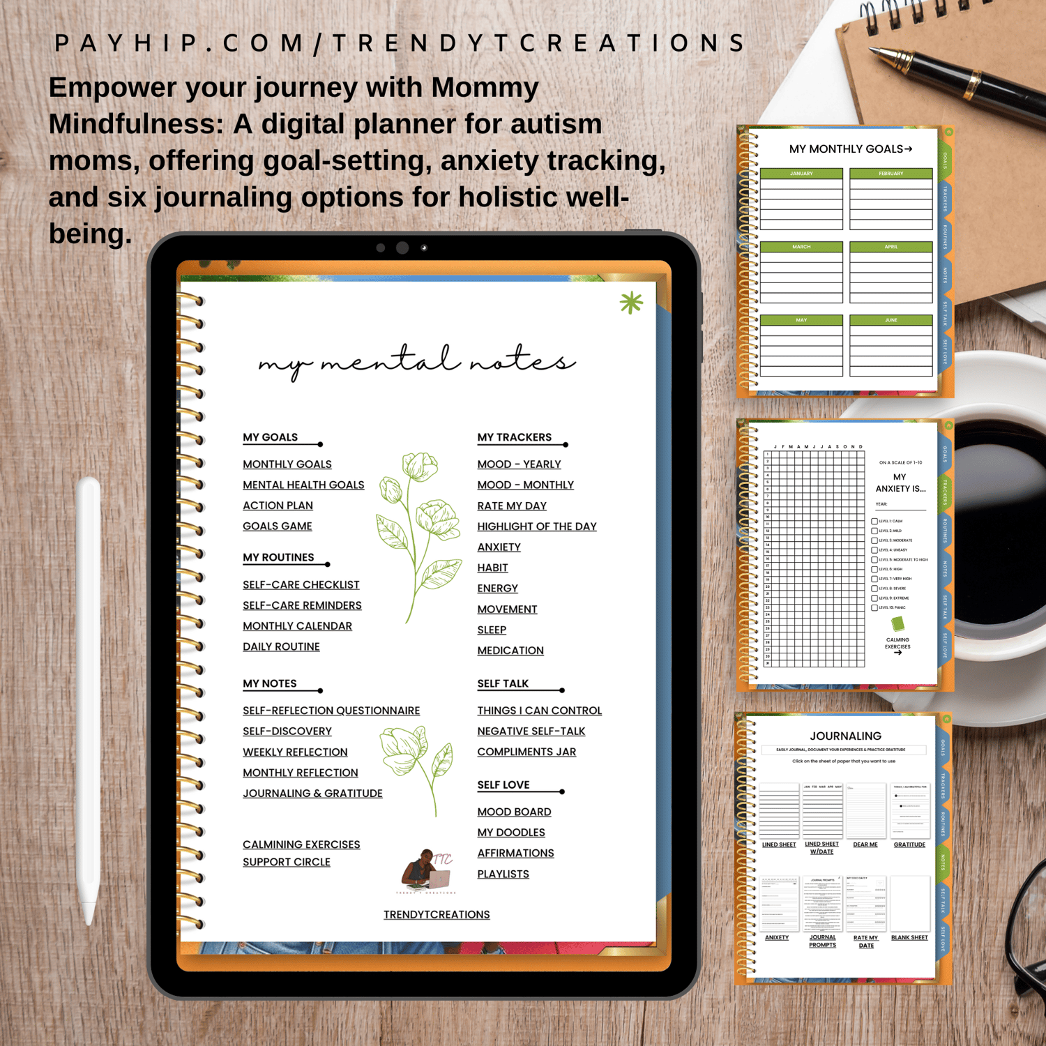 This digital mental health planner is crafted exclusively for personal use, providing a private and secure space for moms to prioritize their well-being while navigating the rewarding journey of parenting children with autism.