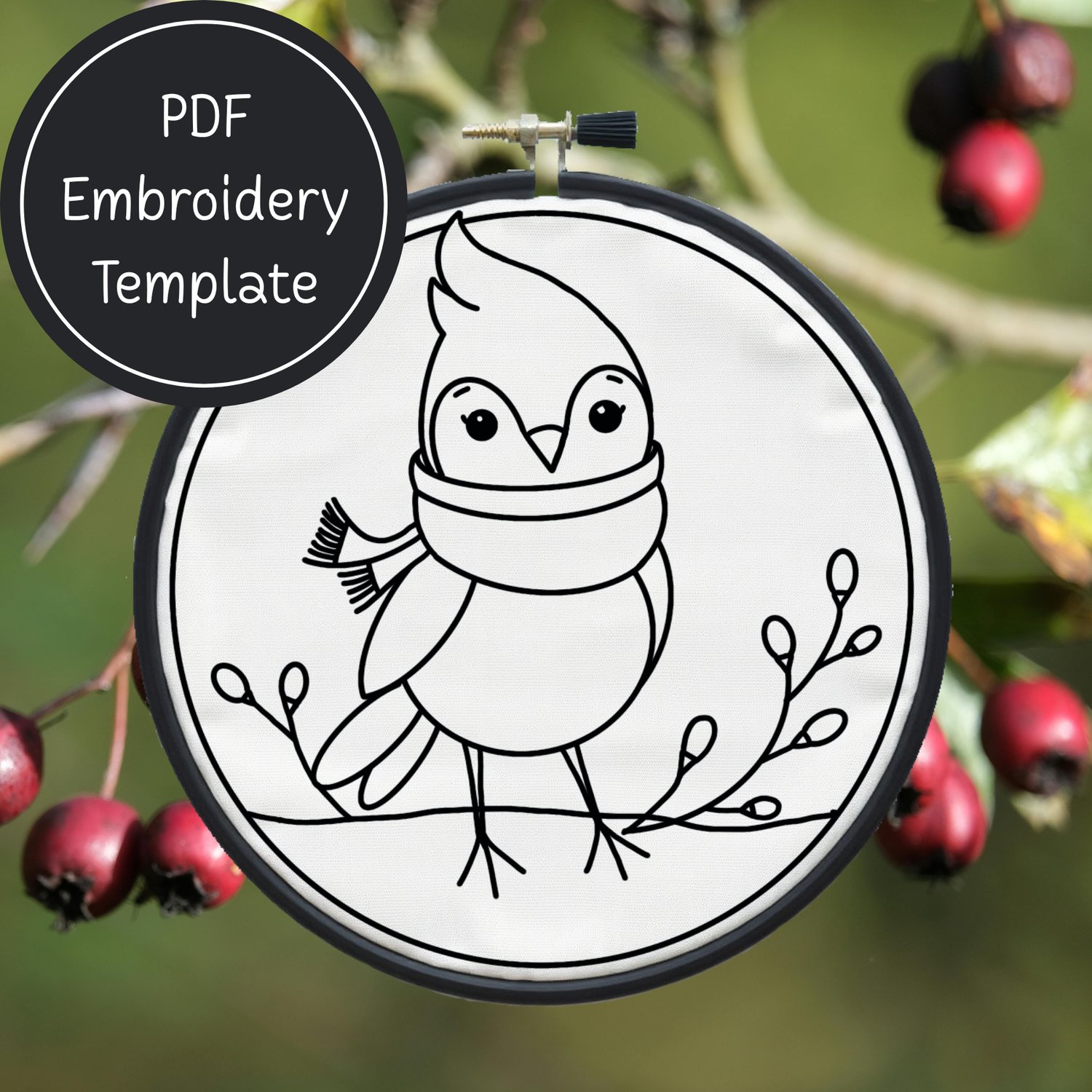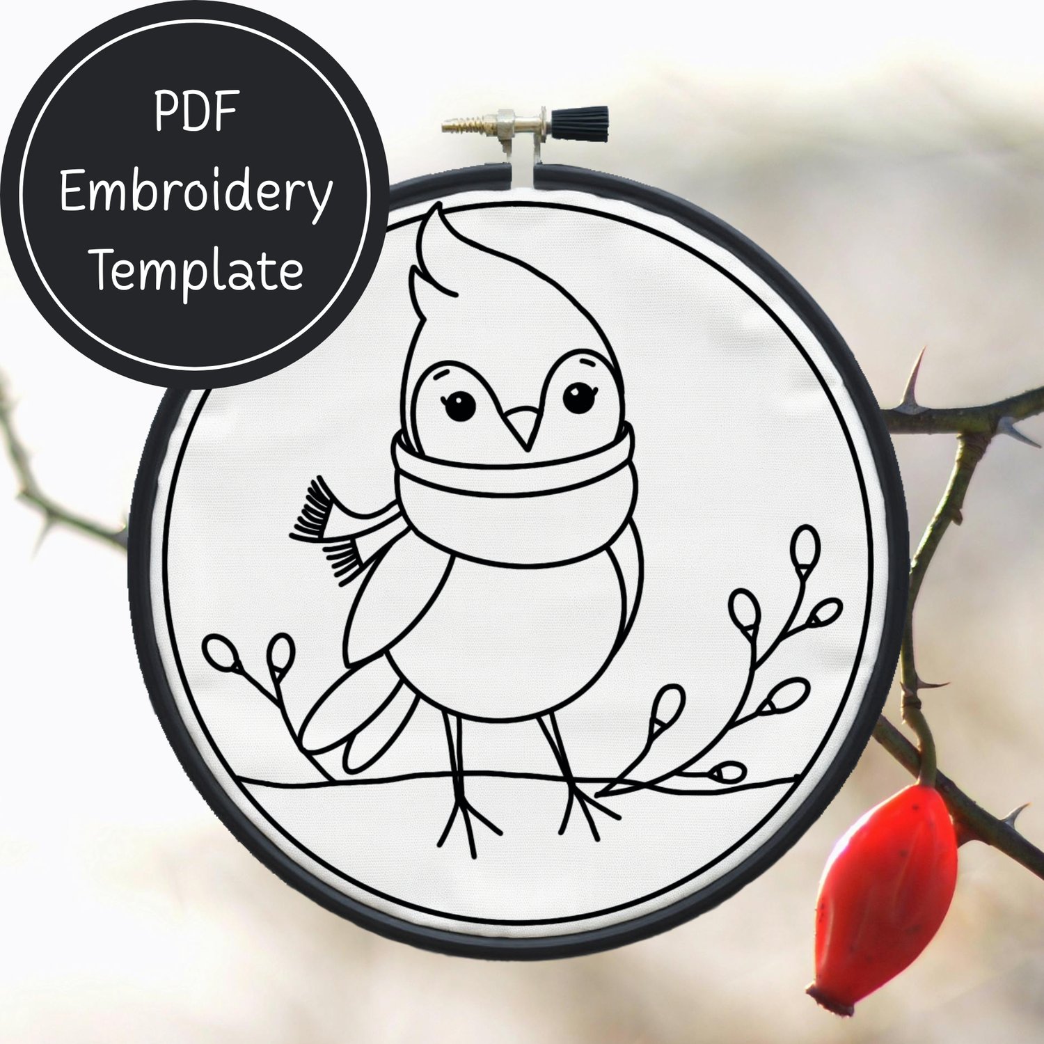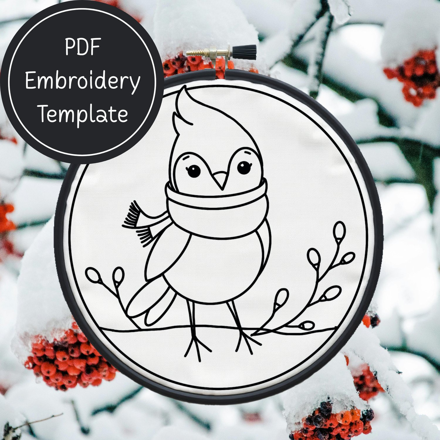 Cold Winter Bird Hand Embroidery Template PDF - DIY Bird Design For Hand Stitching - Instant Download