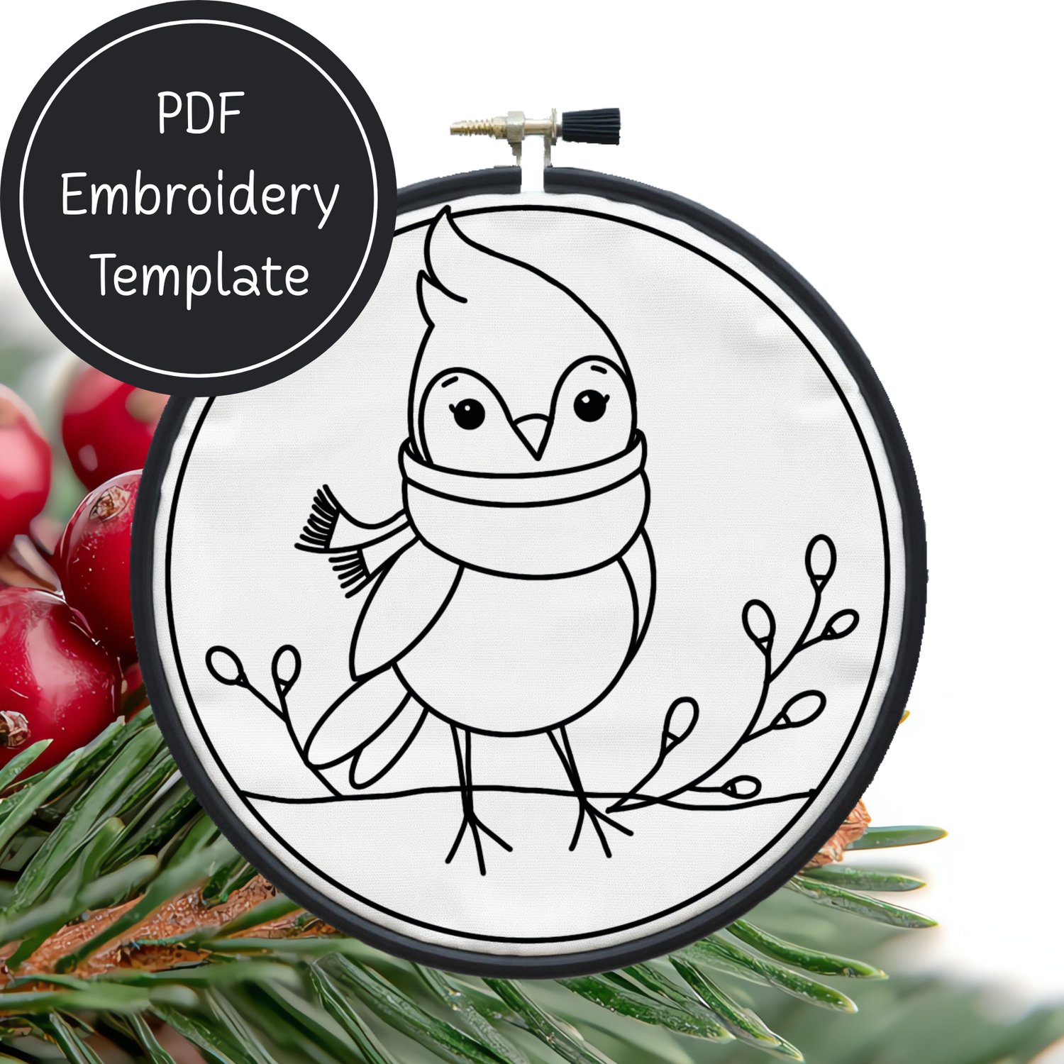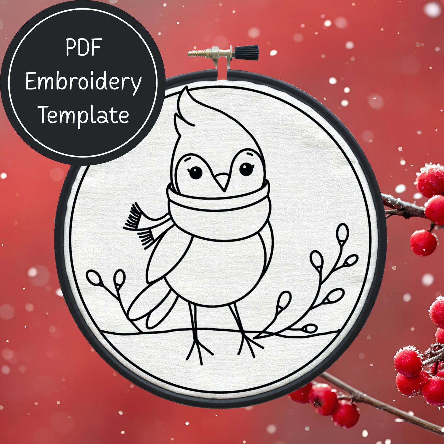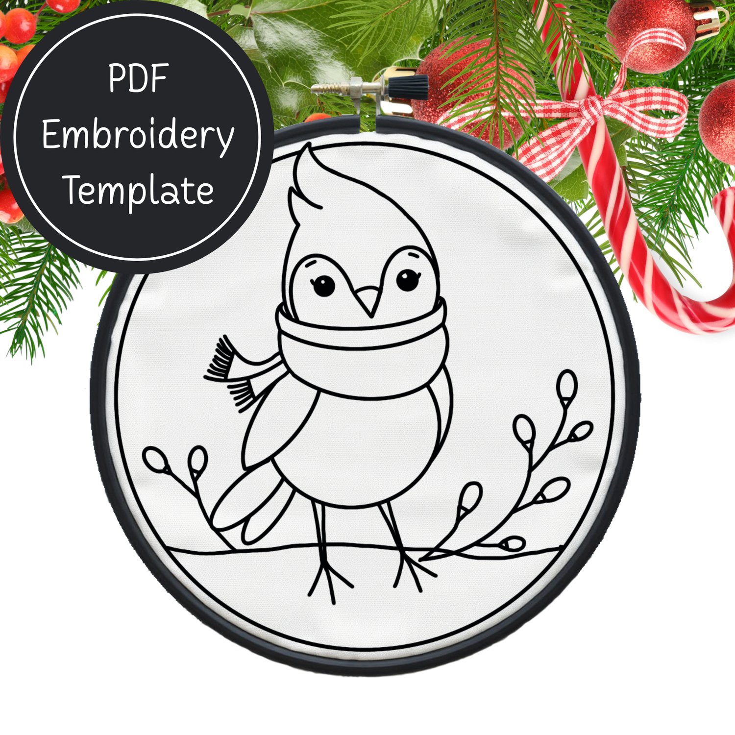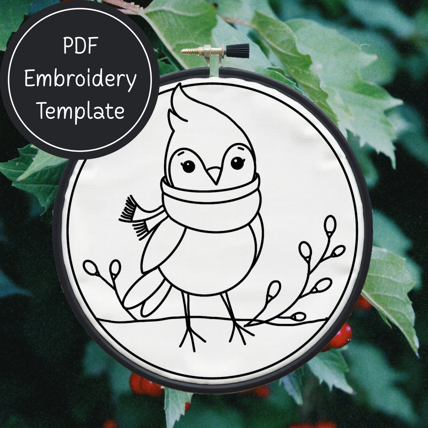 Cold Winter Bird Hand Embroidery Template PDF - DIY Bird Design For Hand Stitching - Instant Download