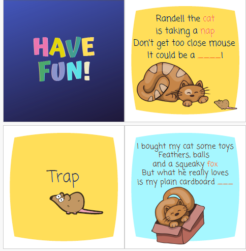 Tip! For the most fun, have your child guess the missing rhyming word before swiping or scrolling to the next page to reveal the answer!