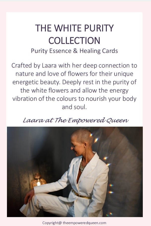 Step into a world of spiritual rejuvenation with the White Purity Essence & Healing Cards, your personal guide to infusing every day or week with the profound spiritual essence and vibrant energy of the flower and energy of the colour.