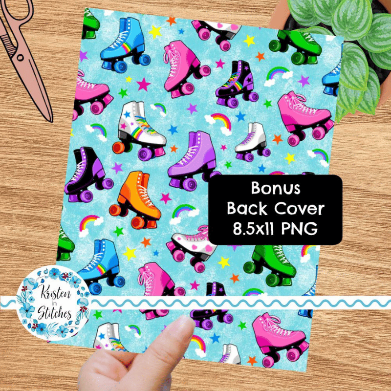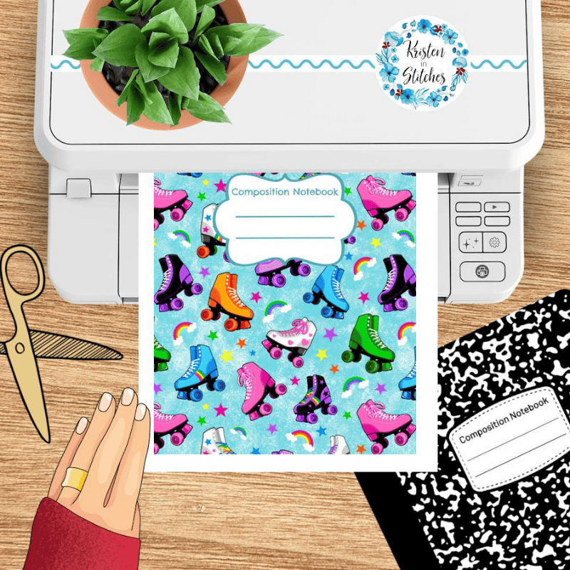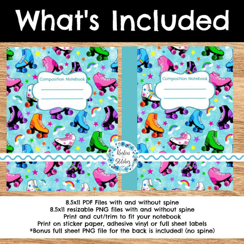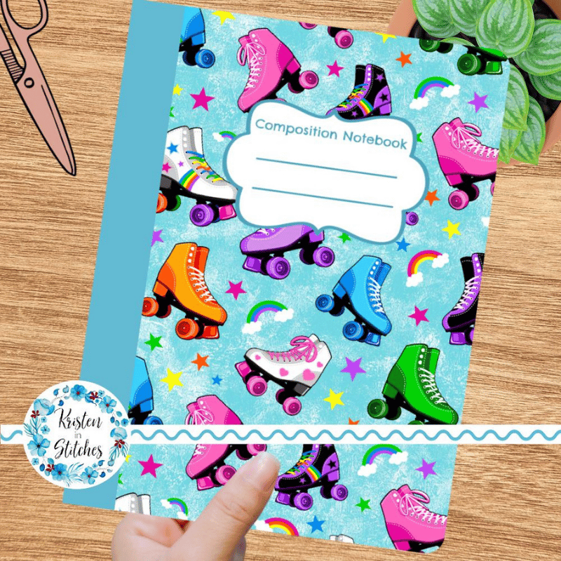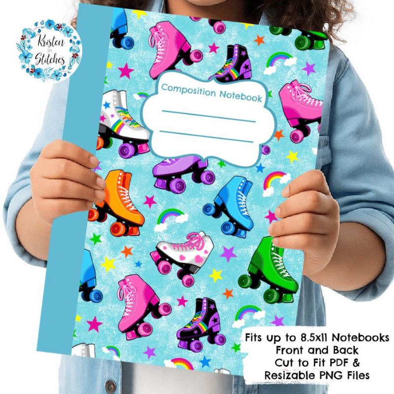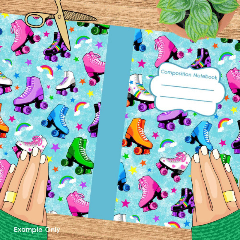 Composition Notebook Cover, Printable Resizable PNG, PDF, Colorful Rollerskates