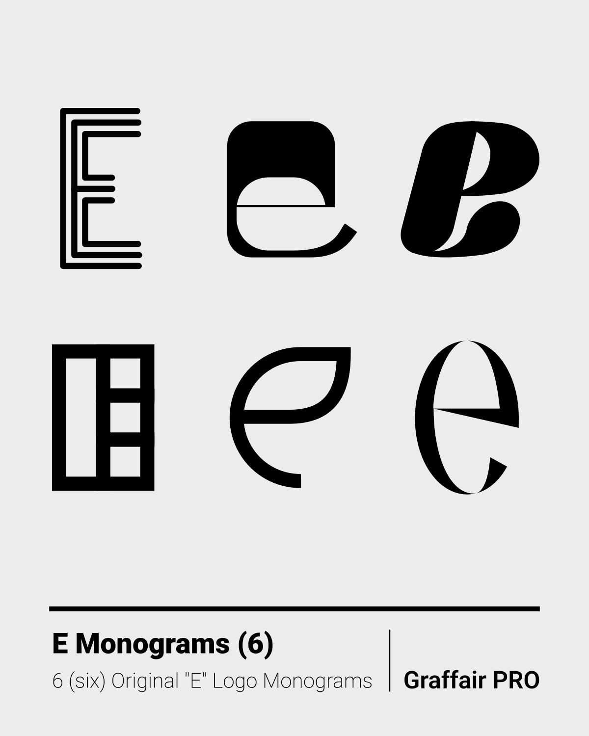E Monograms (6): The 6th set of six original "E" logo monograms, selected from a total of 43, included in the "1050 SVG Monograms" super package, which also features an Index catalog.