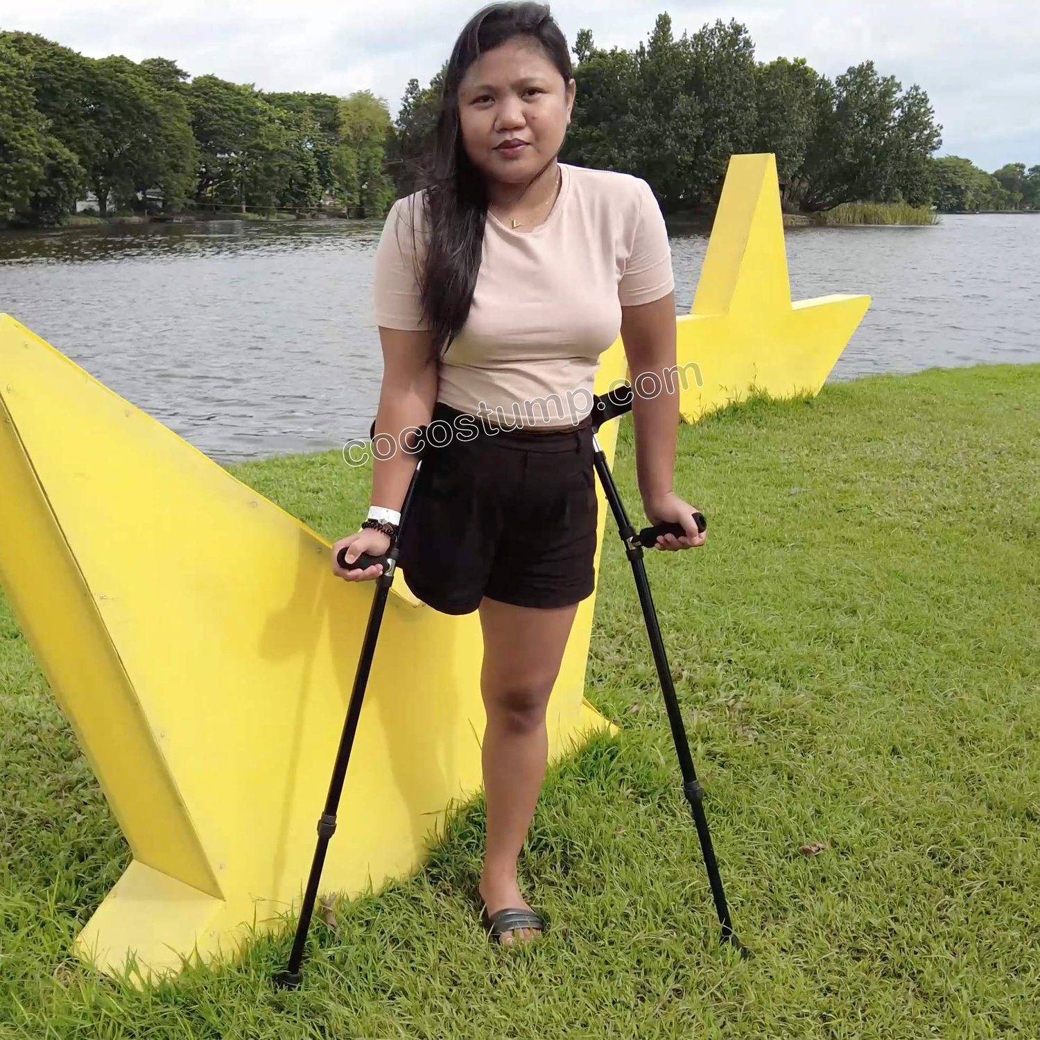 Watch this nice video of Coleen in short pants with forearm crutches. Coleen is walking in a nice amusement part. 20 min, 2160p.