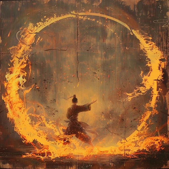 This field is a conceptualisation of a shaolin dance that awakens the quality of this element, creating an aura of fire around you and clearly, within you.