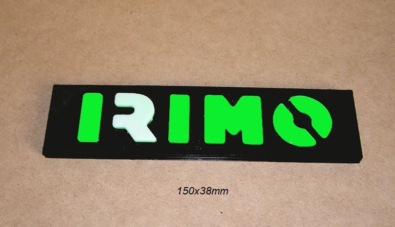 Irimo Poster, sign, tool brand logos, these STL and Gcode files have been created to be printed in various colors with any FDM type printer. The color changes have been made with the Elegoo Neptune 3 Pro printer, but they can be printed on any printer.