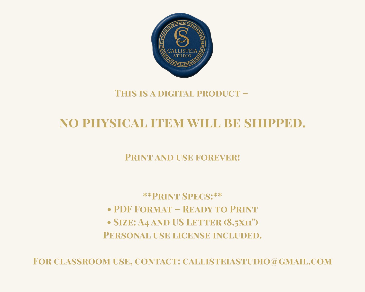 Greek Mythology Printable Activity Pack for Kids | Homeschool Worksheets, Gods, Myths, Activities PDF - Single Classroom License