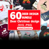 I will provide Premium 60 Creative Deer Christmas Designs by vector bundle for you to re-design and selling on POD platform, Etsy, Amazon Merch, Shopify, Teespring... AND directly use the designs in your local shops & in your own print on demand sites/page.