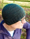 A very simple unisex hat with beanie and slouch options. Alternating bands of pattern stitch and stockinette provide subtle texture and the crown decreases create a neat spoked effect, just like a cog! Knitted with two strands of sock yarn this is designed for stashbusting; use two half skeins or try alternating skeins for great effect in the patterned sections (see the beautiful versions by my test knitters).