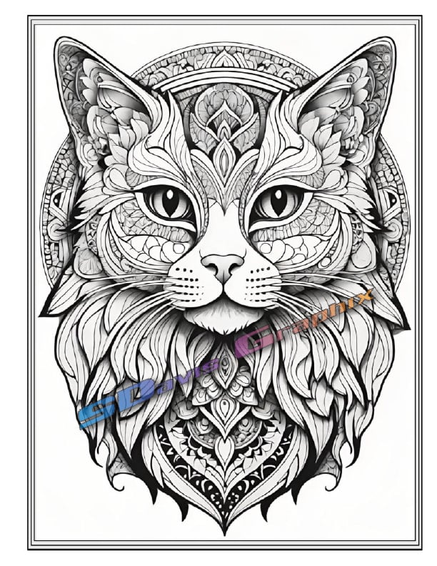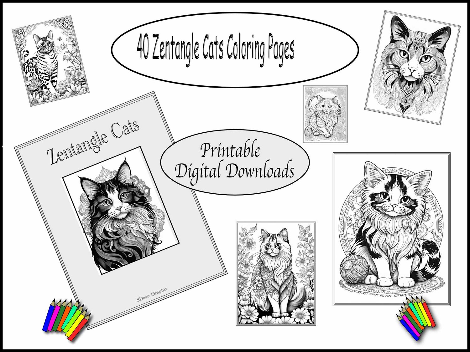 Printable Coloring Pages - 40 Zentangle Style Cats - Instant Download