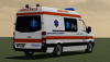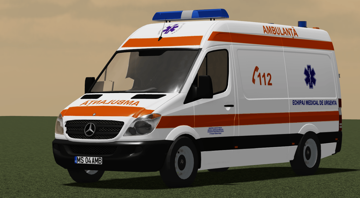 An ambulance Mercedes what is mainly used on county roads, like rural city's.